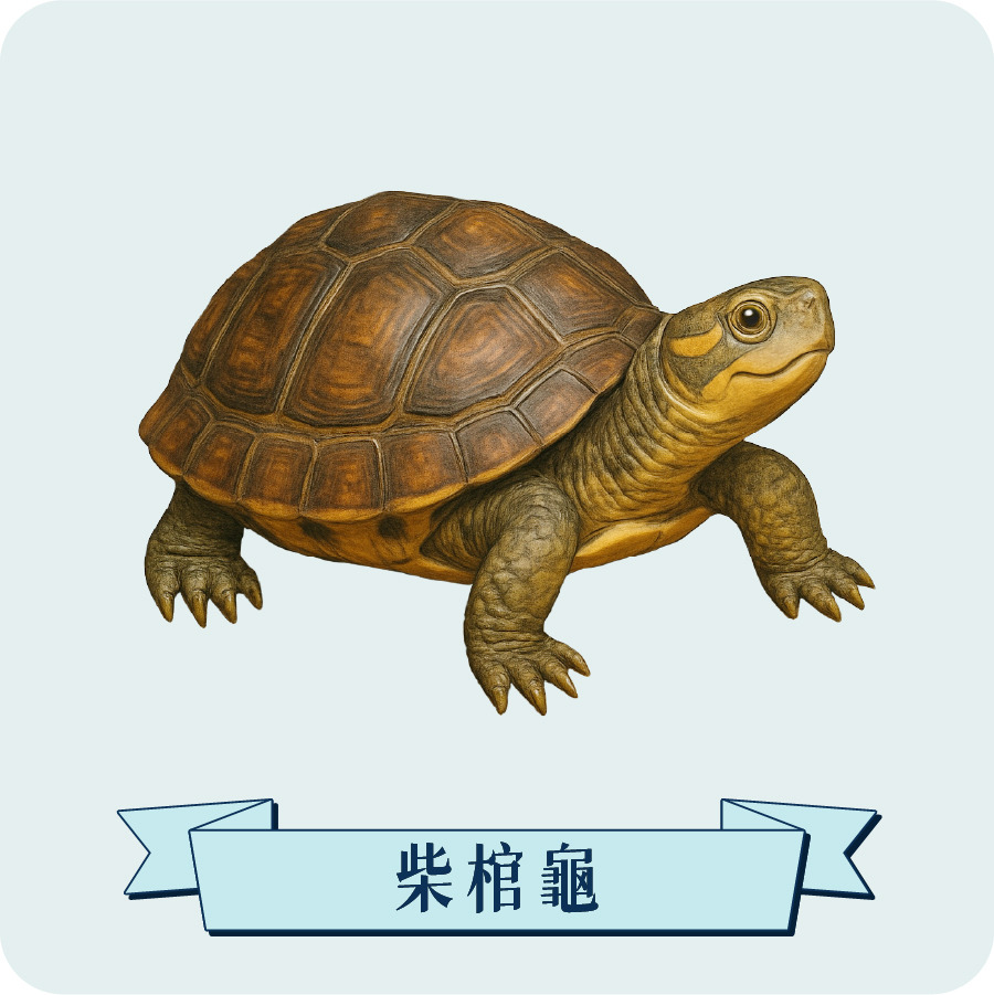 柴棺龜是台灣常見的半水棲淡水龜,主要生活在低海拔山區周邊的水塘、溝渠與稻田之間,因此也被許多農民親切地稱為「米龜」。牠們不只在水中活動,有時也會爬上陸地,甚至進入森林底層緩慢漫步,是少數能自在穿梭水域與陸地之間的龜類。