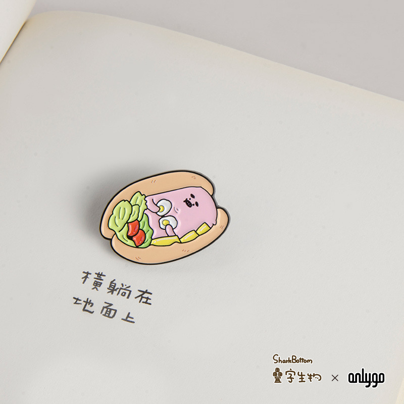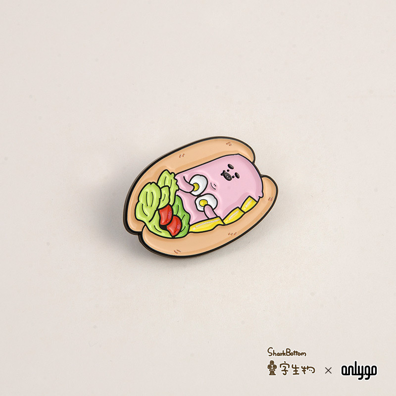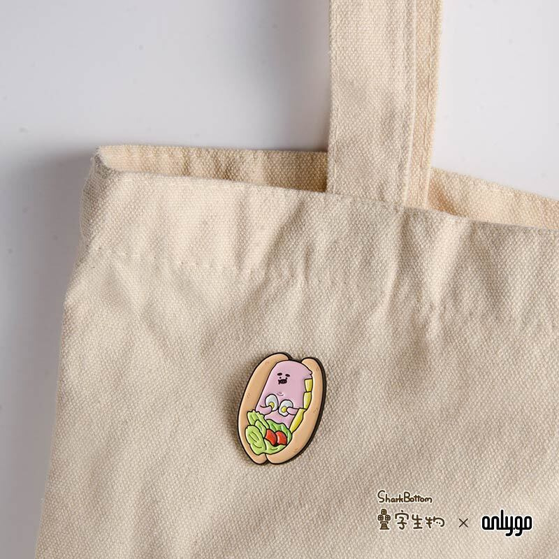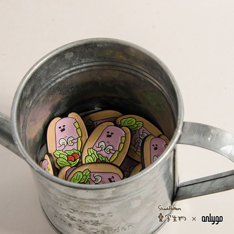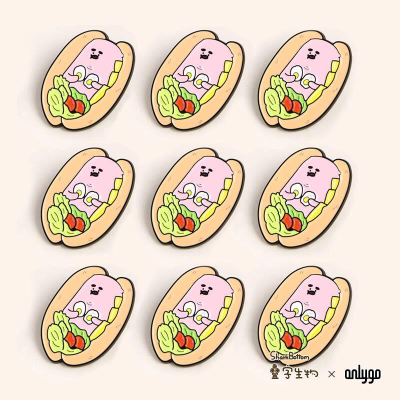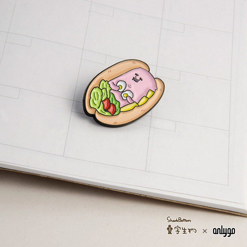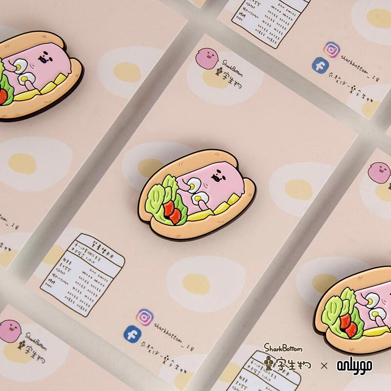 「疊字生物」搞怪、具幽默感的風格,外加作者屁股沙 Shark Bottom 本身就屬豬,對豬情有獨鍾,豬豬的各種形象就如同作者本人一樣,呆呆傻傻又奇奇怪怪。作者便以情有獨鍾的「豬豬」為主角,結合食物漢堡而誕生了這次的獨家設計徽章「豬豬堡堡」。