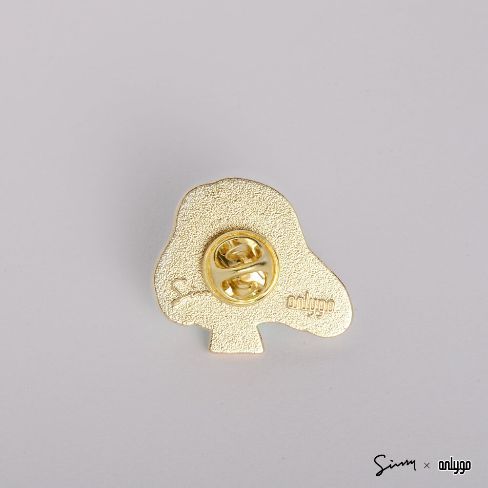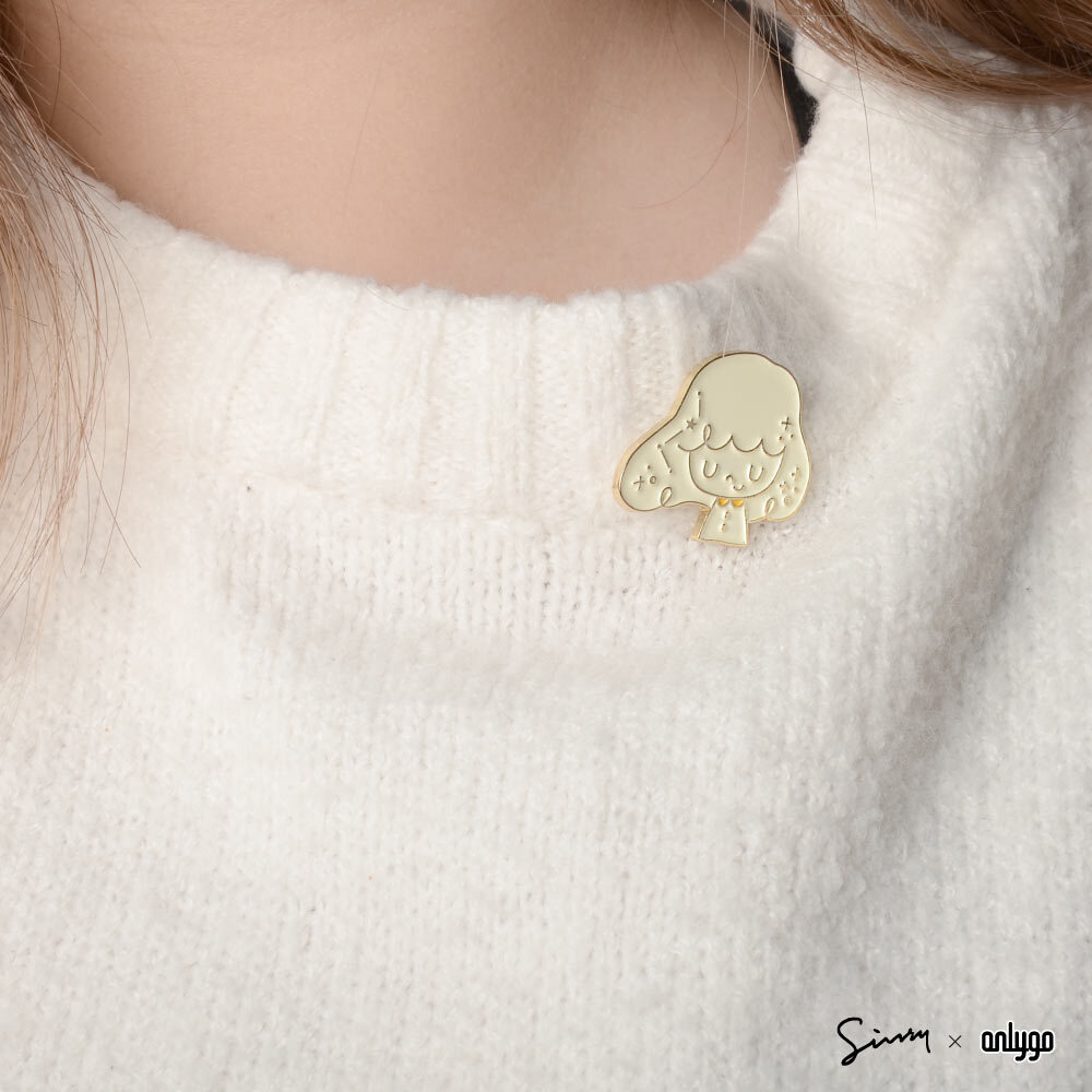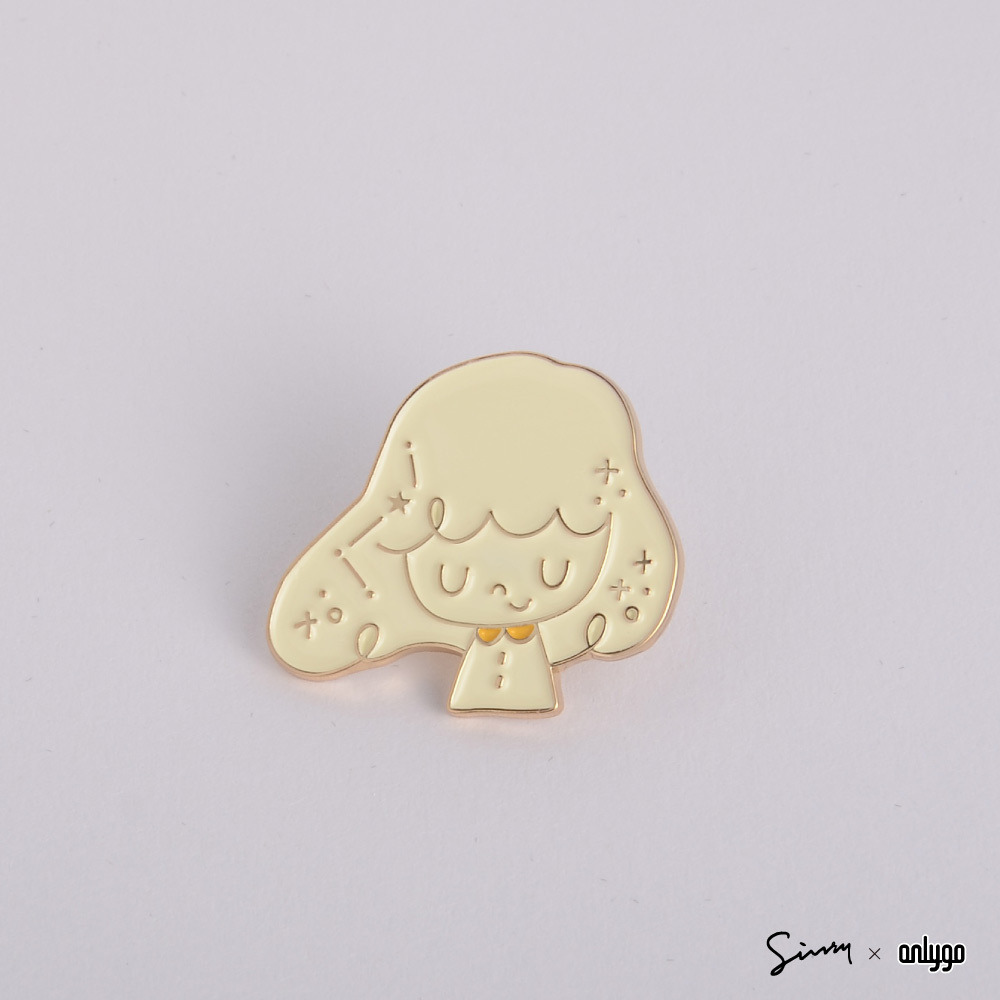 徽章整體使用細緻的金色邊框,配色特別選用乳白色搭配品牌象徵的黃色,柔和不死白,別起來亮眼可愛!