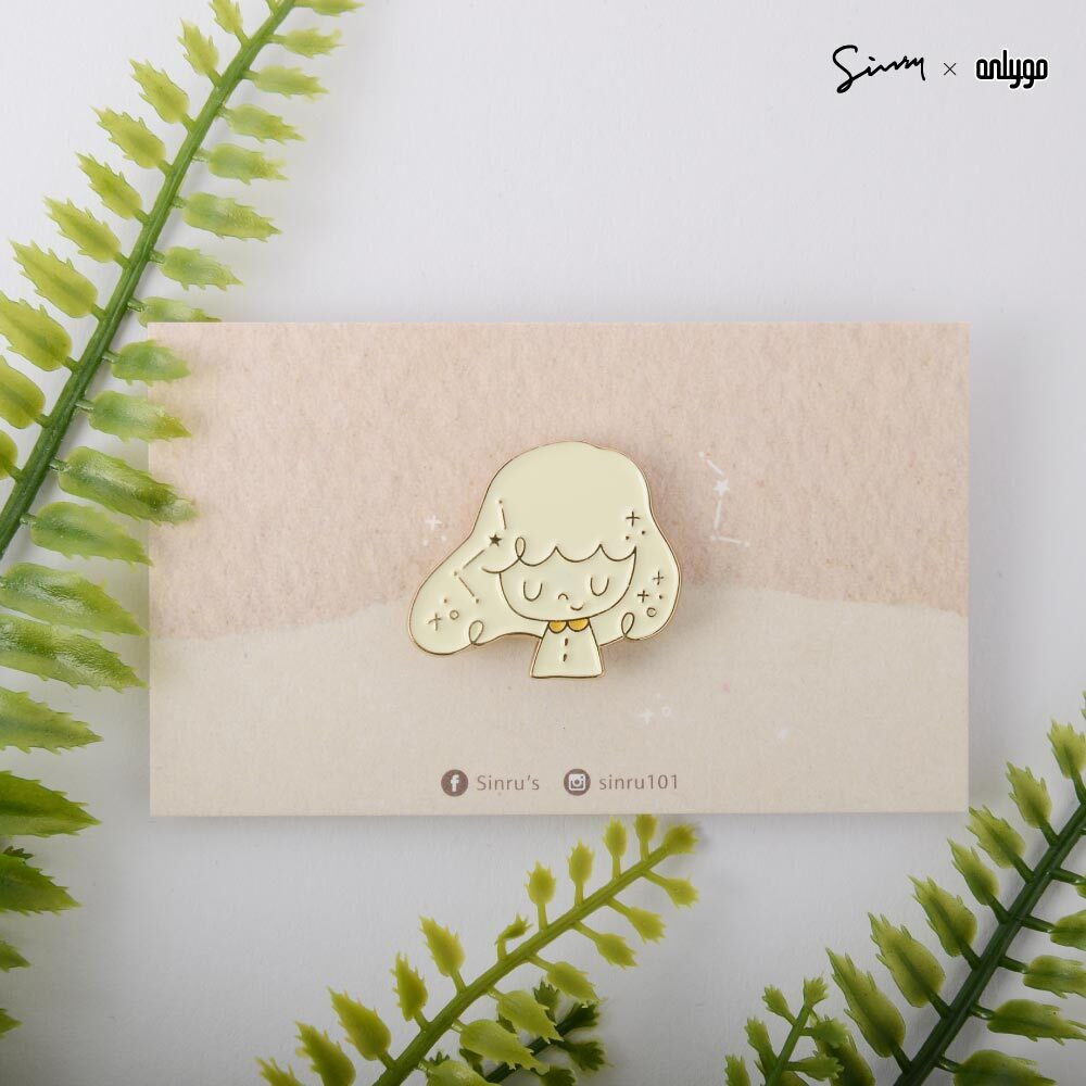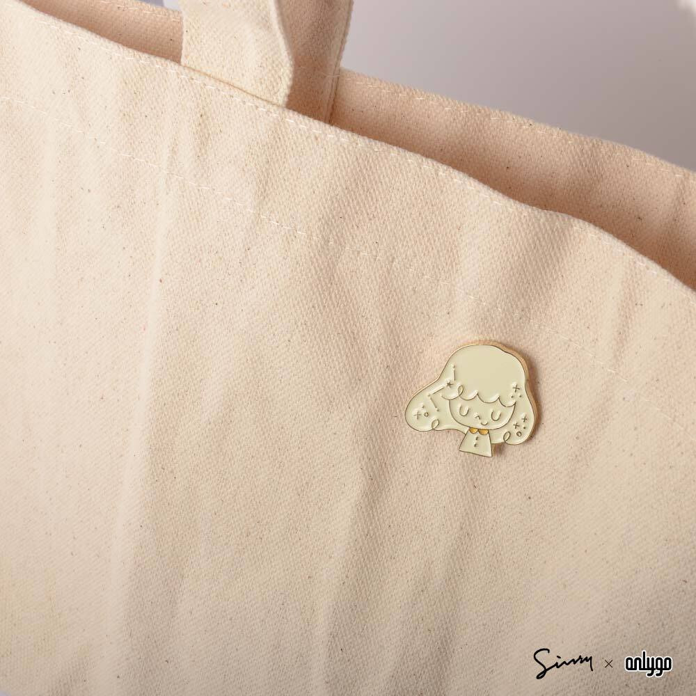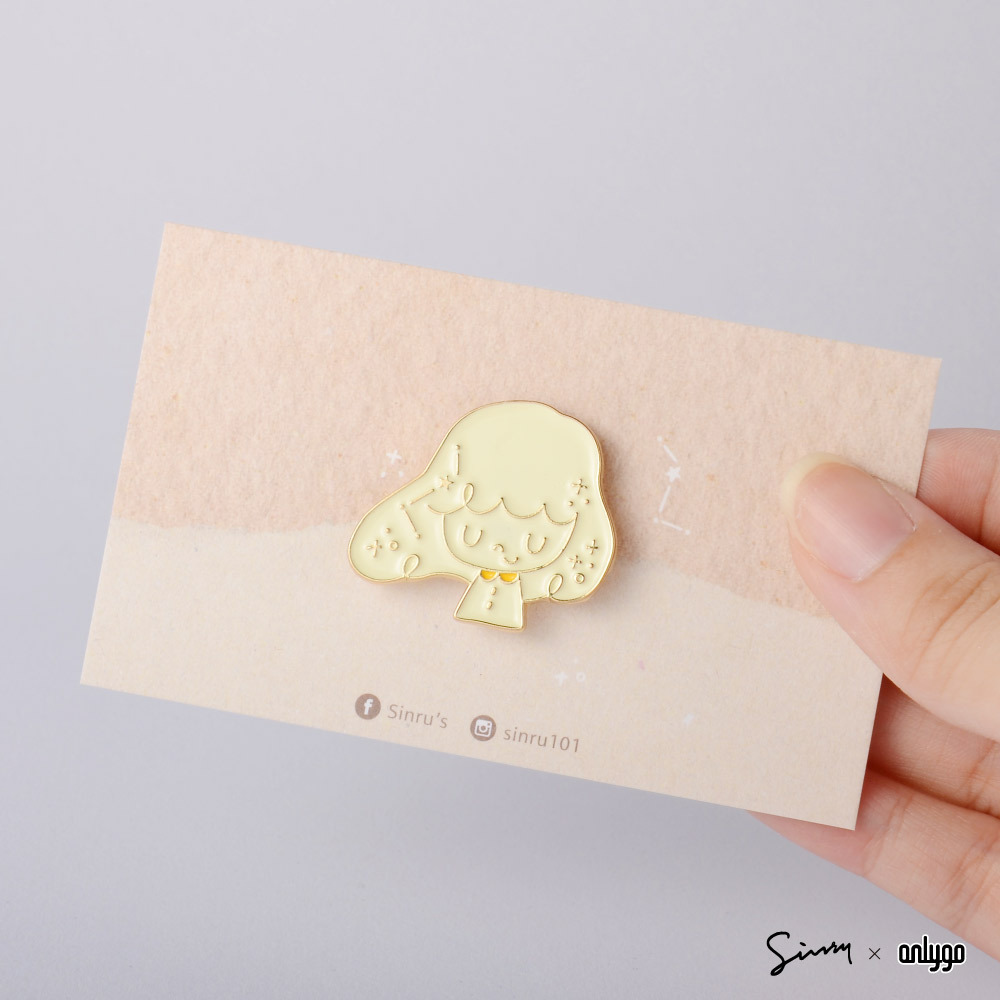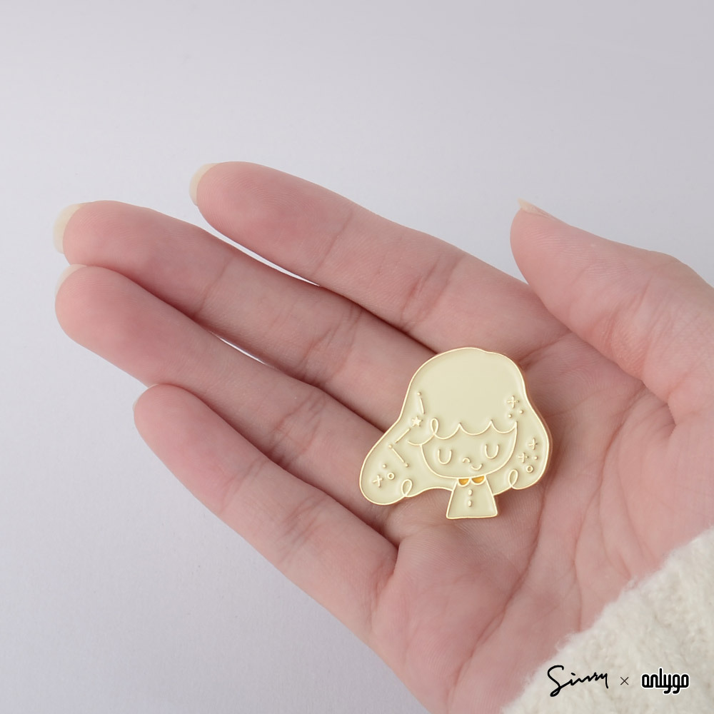 徽章整體使用細緻的金色邊框,配色特別選用乳白色搭配品牌象徵的黃色,柔和不死白,別起來亮眼可愛!