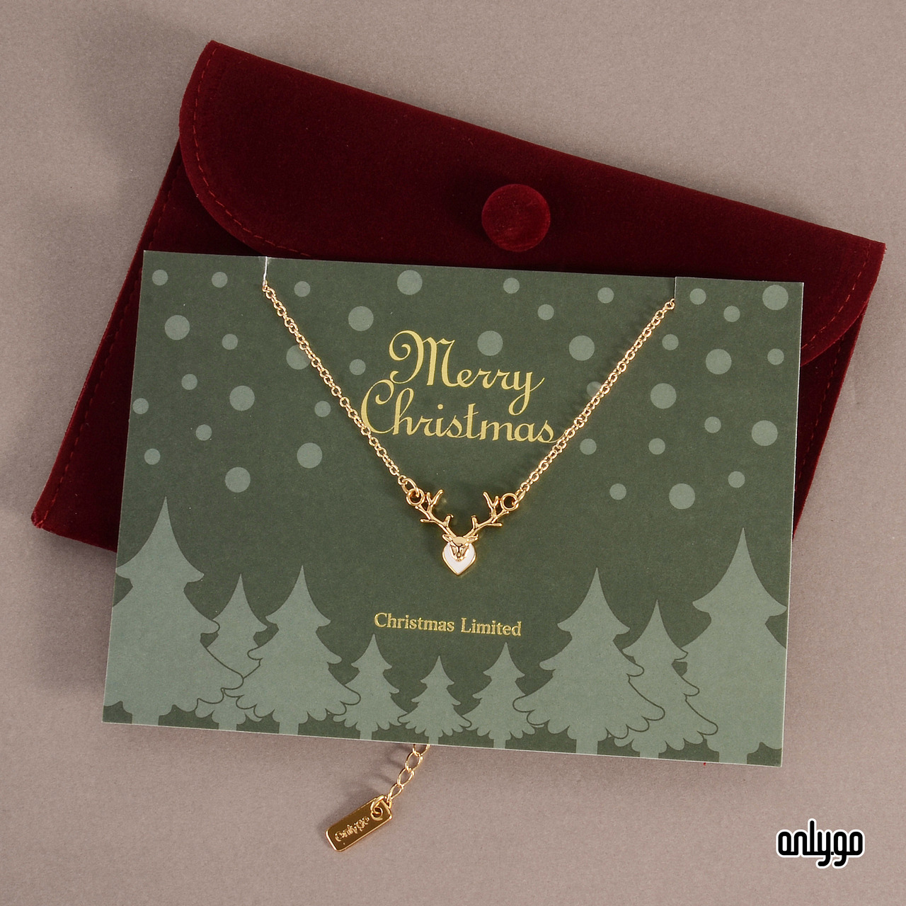 馴鹿造型質感項鍊聖誕限定款,附有精美絨布信封袋一個,可直接包裝成聖誕禮物送給對方。