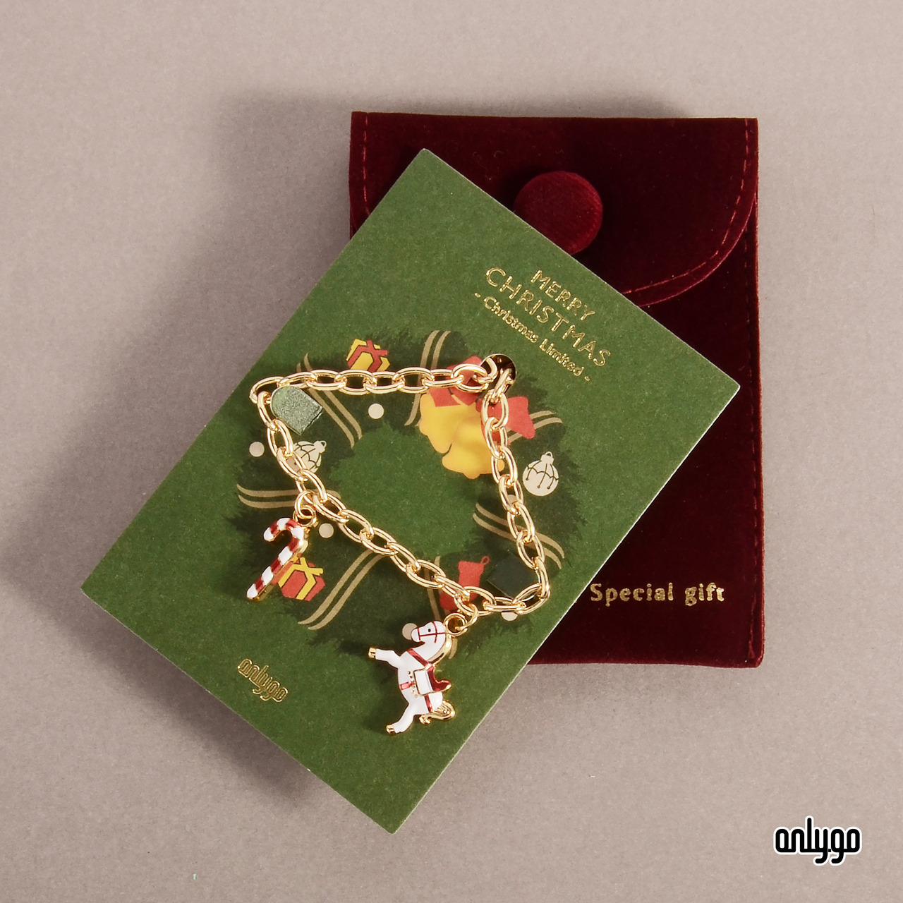 昂里今年推出三款限量聖誕禮品:馴鹿造型質感項鍊、聖誕老人與他的羊駝酒精噴霧瓶、北歐經典木馬手鍊。