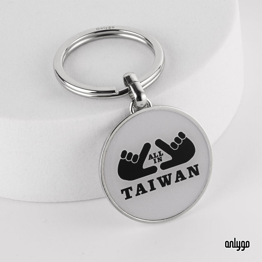 這款鑰匙圈選擇最簡單的黑白雙色,將 All In 精神濃縮為線條與字型,形成強烈視覺記憶,既適合日常配戴,也方便搭配各種風格包款或服飾。