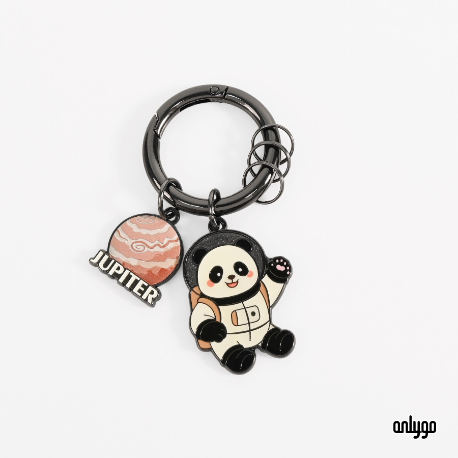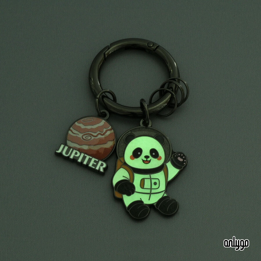 動物太空人夜光鑰匙圈採用夜光漆工藝,吸光後能在黑暗中呈現夜光效果,讓大貓熊太空人在星際中發光。