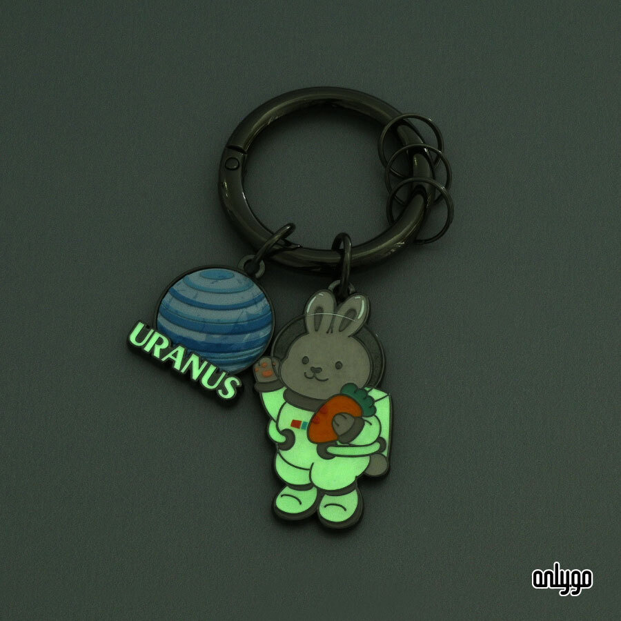 動物太空人夜光鑰匙圈採用夜光漆工藝,吸光後能在黑暗中呈現夜光效果,讓侏儒兔太空人在星際中發光。