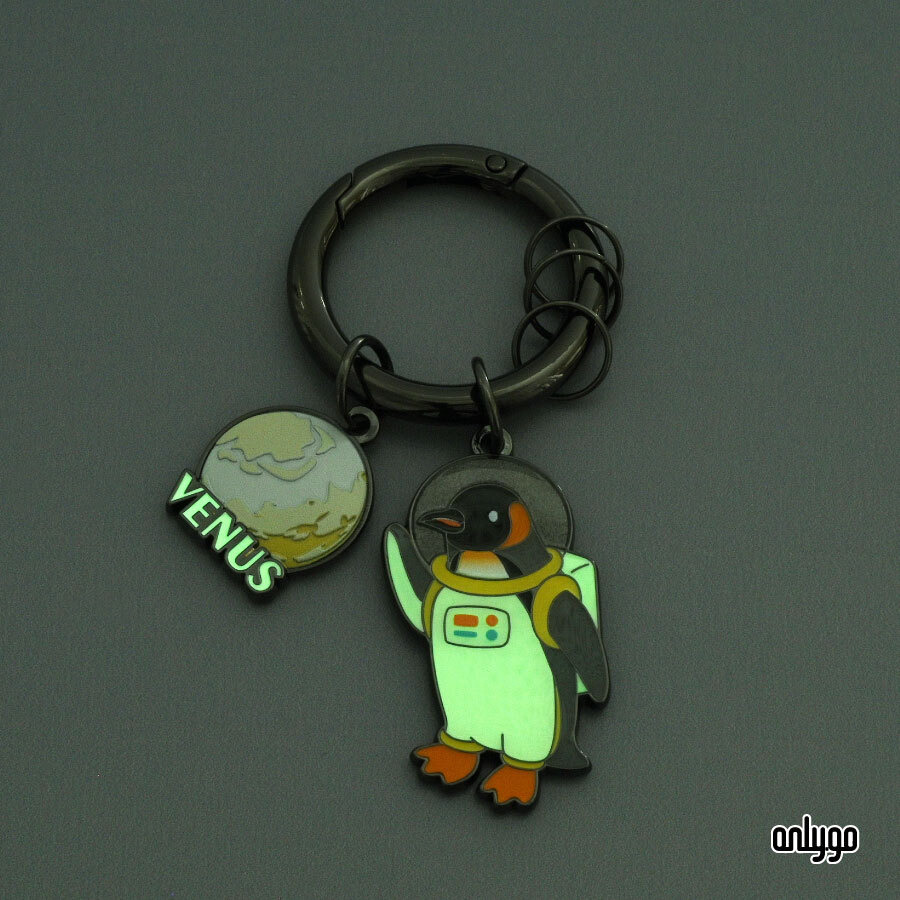 動物太空人夜光鑰匙圈採用夜光漆工藝,吸光後能在黑暗中呈現夜光效果,讓國王企鵝太空人在星際中發光。