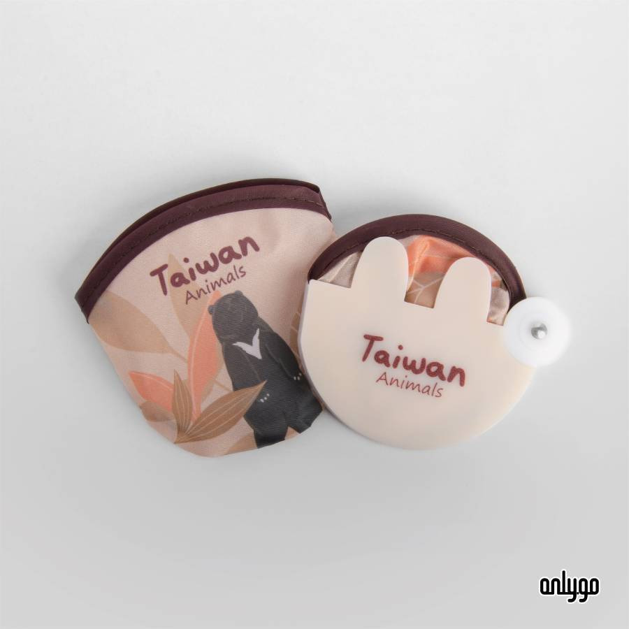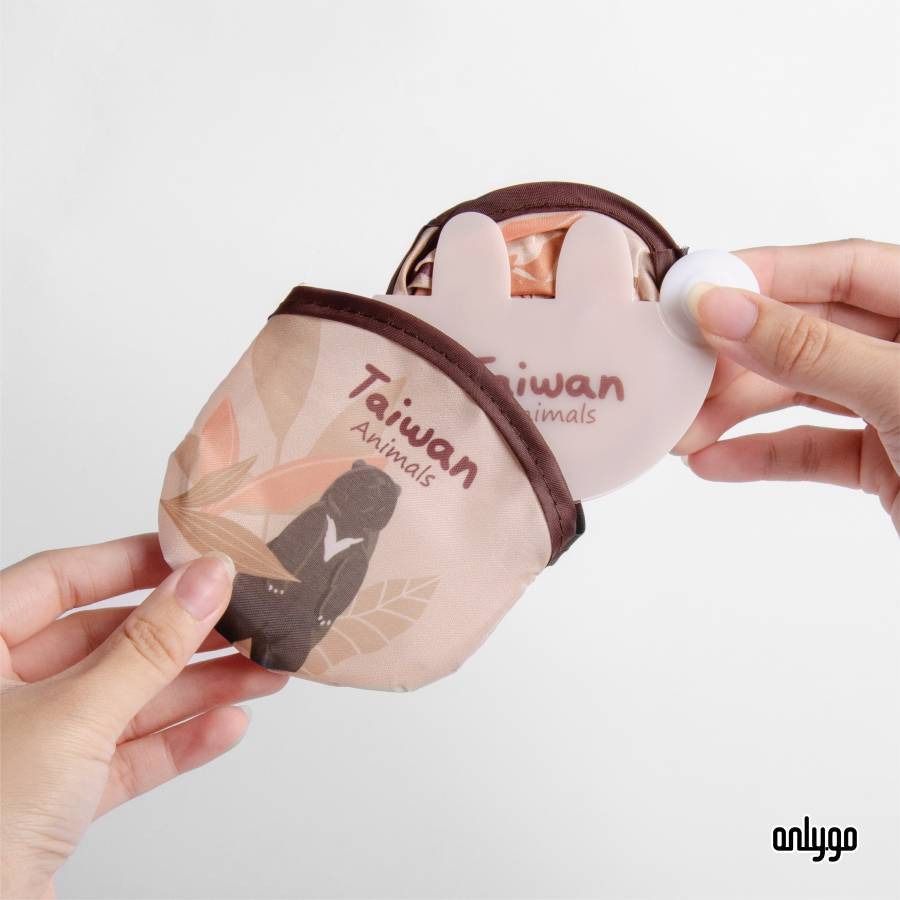 動物插畫摺疊扇附有兔子耳朵造型塑膠收納殼,將圓扇卡入凹槽中,即可輕鬆搧風。