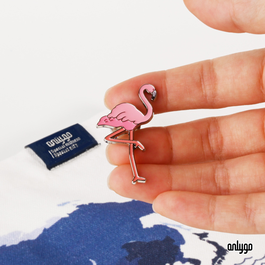 美洲紅鶴徽章以柔和粉彩,復刻紅鶴典雅身形與經典單腳姿勢。