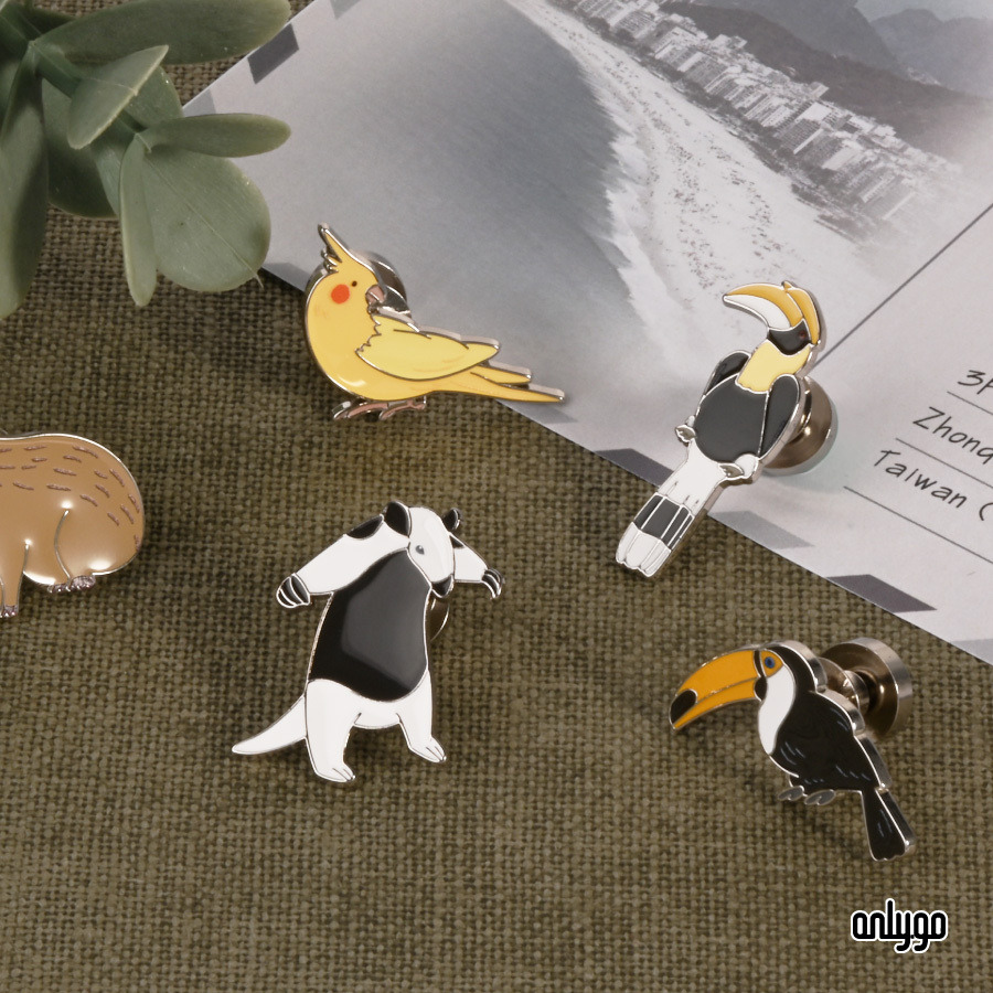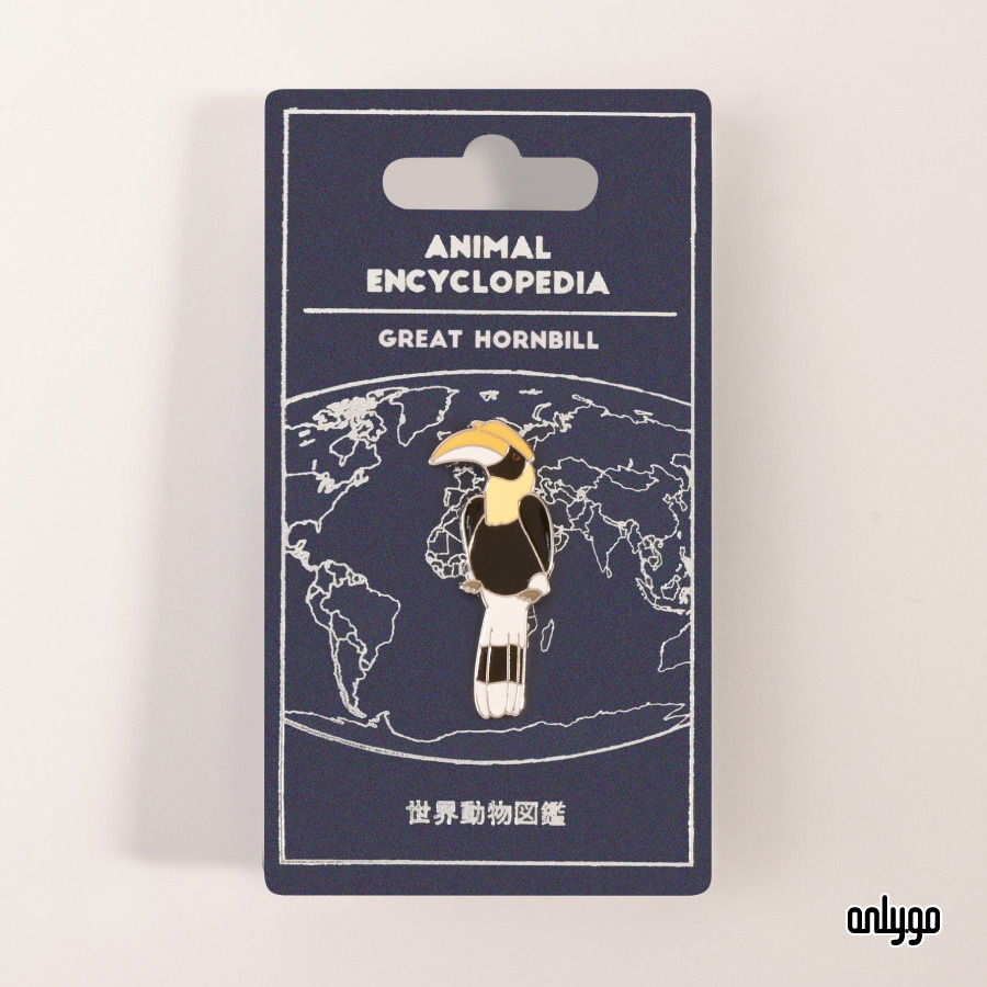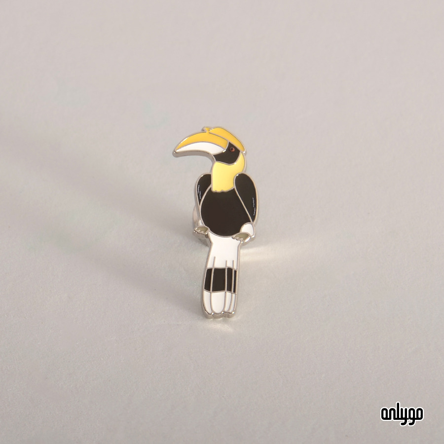 印度大犀鳥徽章以極簡線條刻畫印度大犀鳥標誌性的黃黑嘴甲與黑白羽毛,搭配亮眼黃冠與長尾細節,低調中透著精緻。