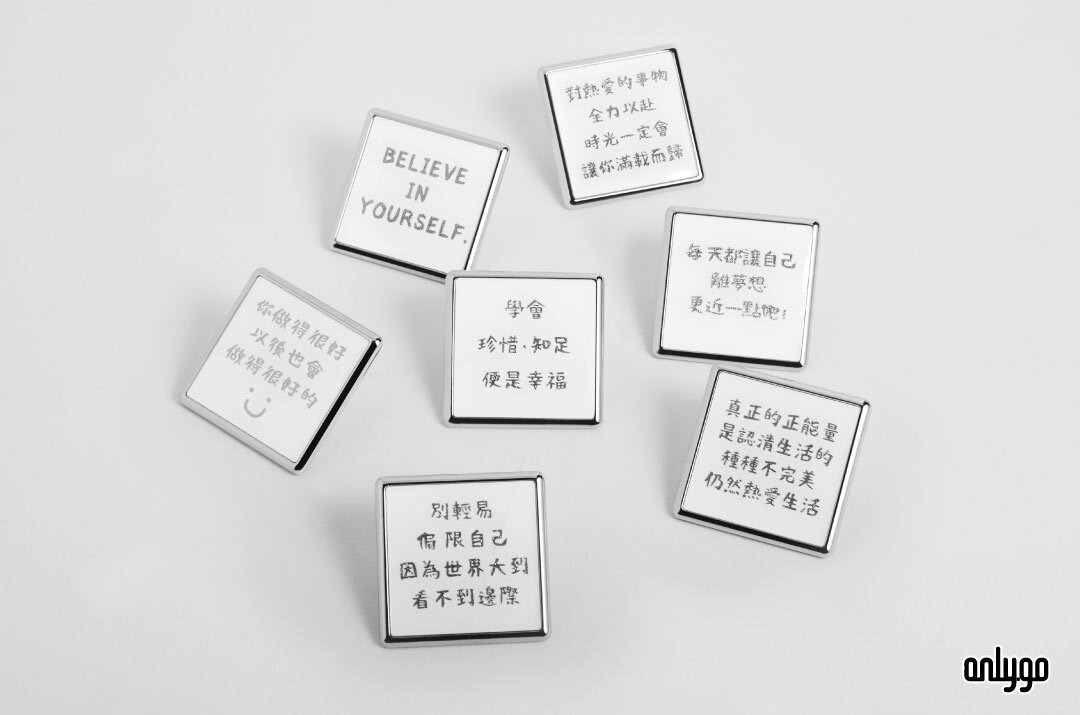 將正能量語錄徽章別在包包上,帽子上,