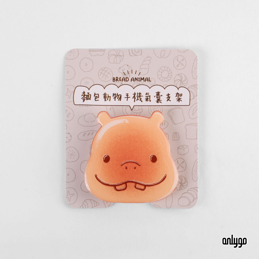 於是就誕生了麵包動物手機氣囊支架,結合紅豆麵包與動物頭像,設計出大象、水豚、羊駝、老虎、河馬、貓熊共六款麵包動物手機氣囊支架。