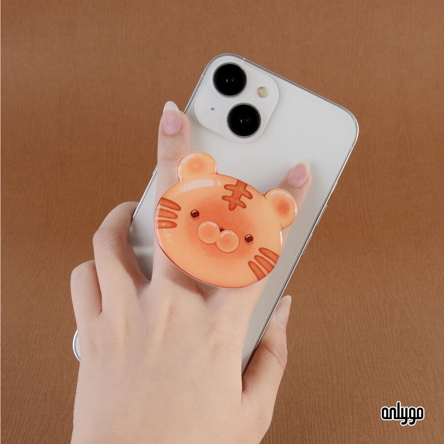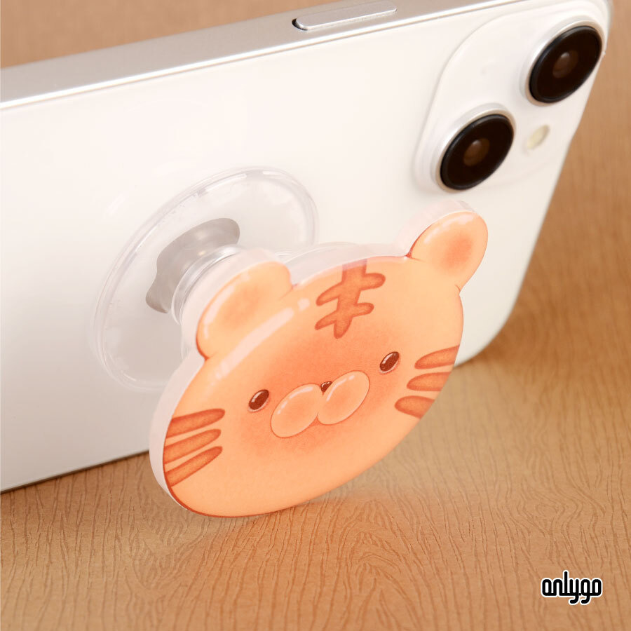 小老虎圓圓的下巴,不當手機支架,單純放在桌上晃來晃去也很可愛!