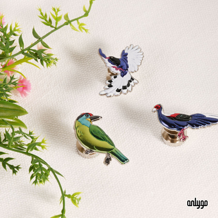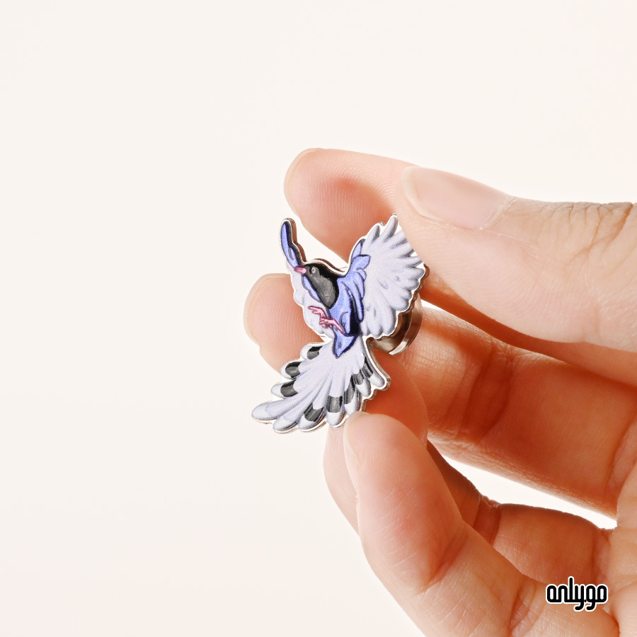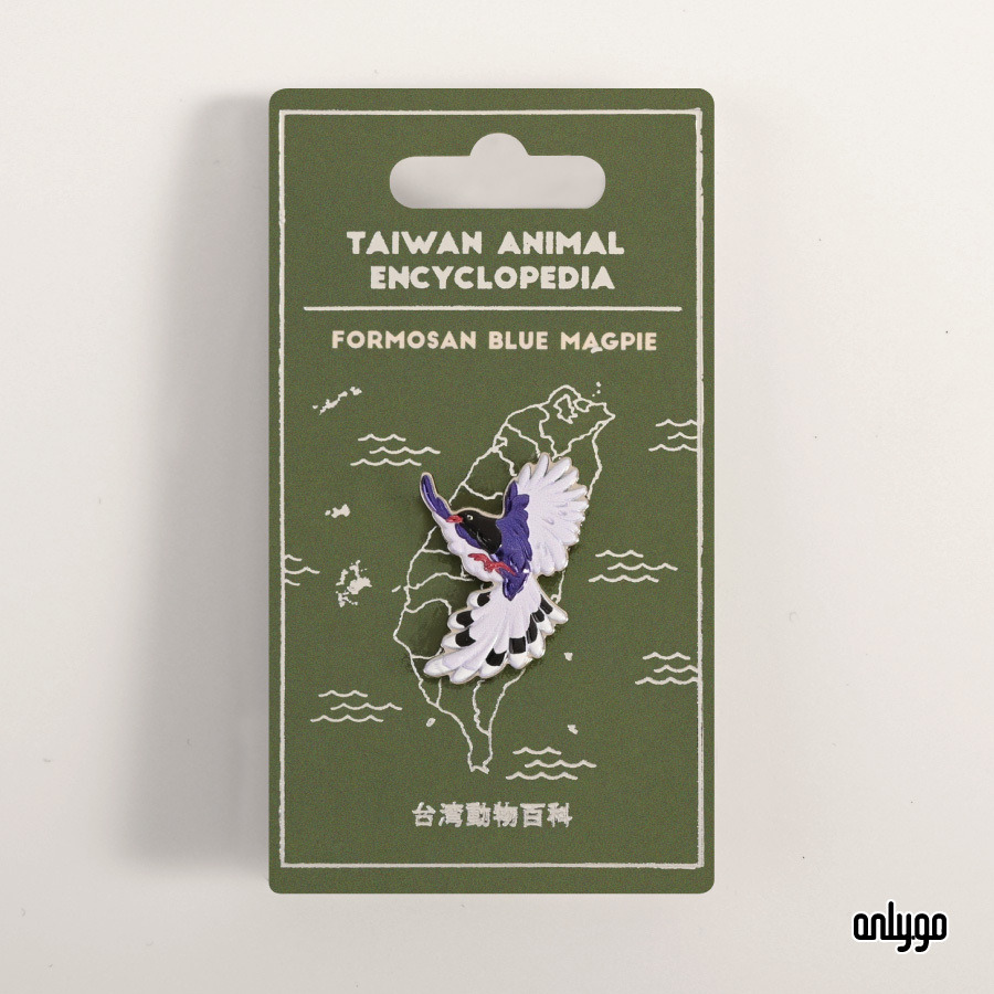 台灣藍鵲徽章用 3D 造型和鮮明的噴印色彩,還原動物的繽紛魅力。