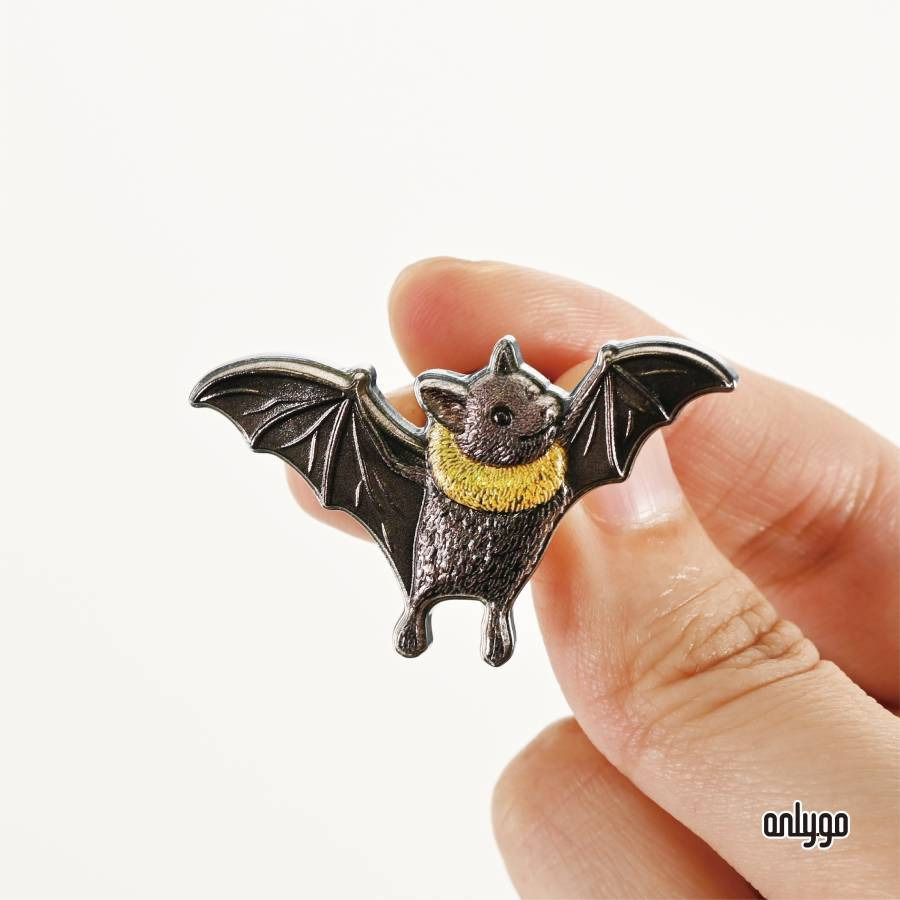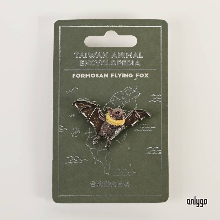 台灣狐蝠磁吸徽章以 3D 立體雕刻描繪寬展的翅膀輪廓與圓潤頭部比例,再以高解析彩色噴印呈現深色翅膜與柔和毛色,展翅準備迎接夜色的下一趟飛行。