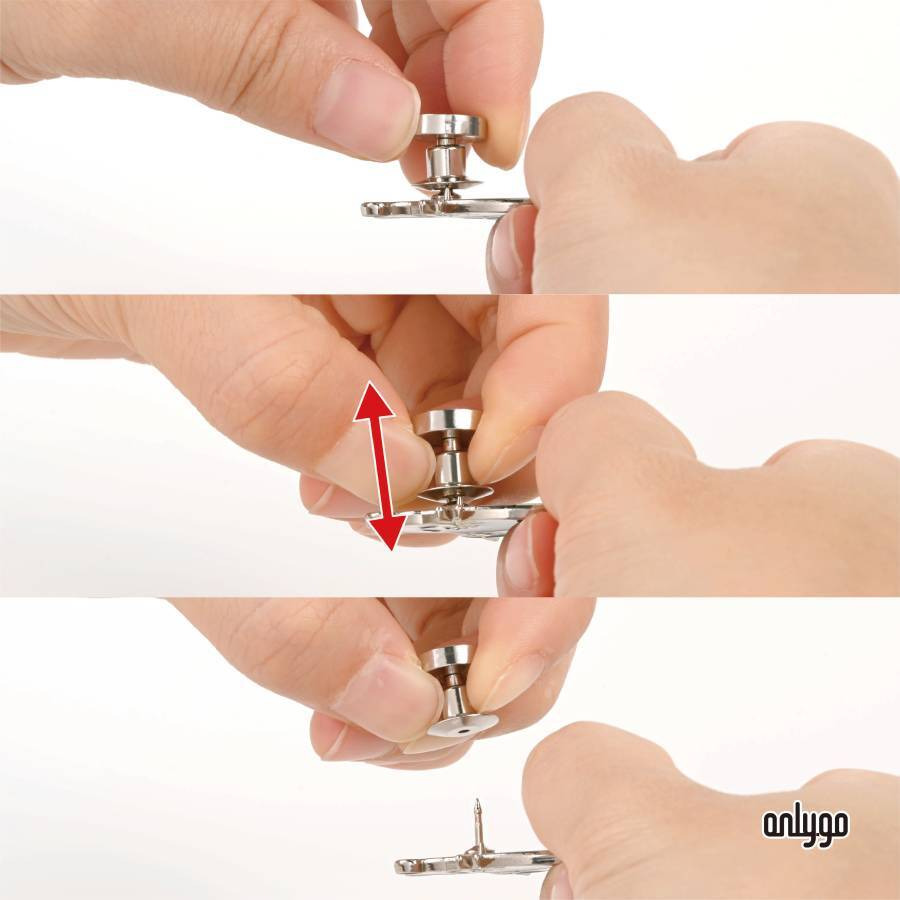 放回也是喔,將別針頭放置洞口,同時推拉中間檔片,即可插回。