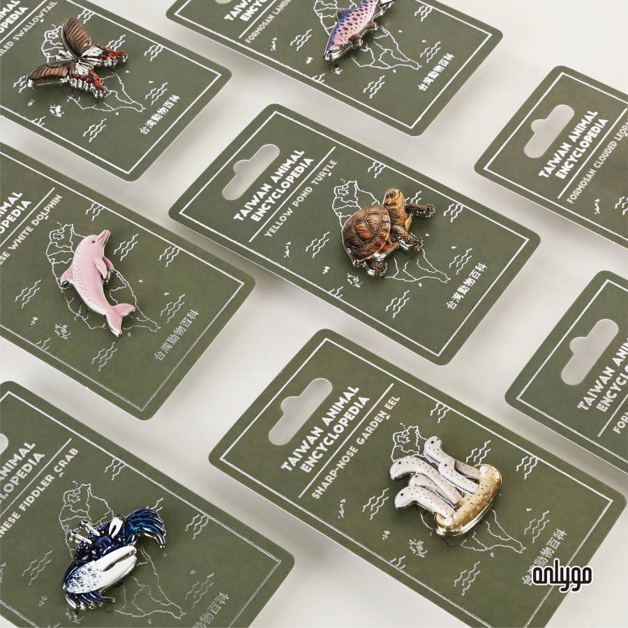昂里用心捕捉台灣原生動物的自然之美,將台灣代表性原生動物——台灣白海豚、台灣招潮蟹、台灣狐蝠、台灣寬尾鳳蝶、柴棺龜、櫻花鉤吻鮭、台灣園鰻、台灣雲豹 ——化身為栩栩如生的3D彩色徽章,每一款都展現出動物的獨特魅力與生命力。