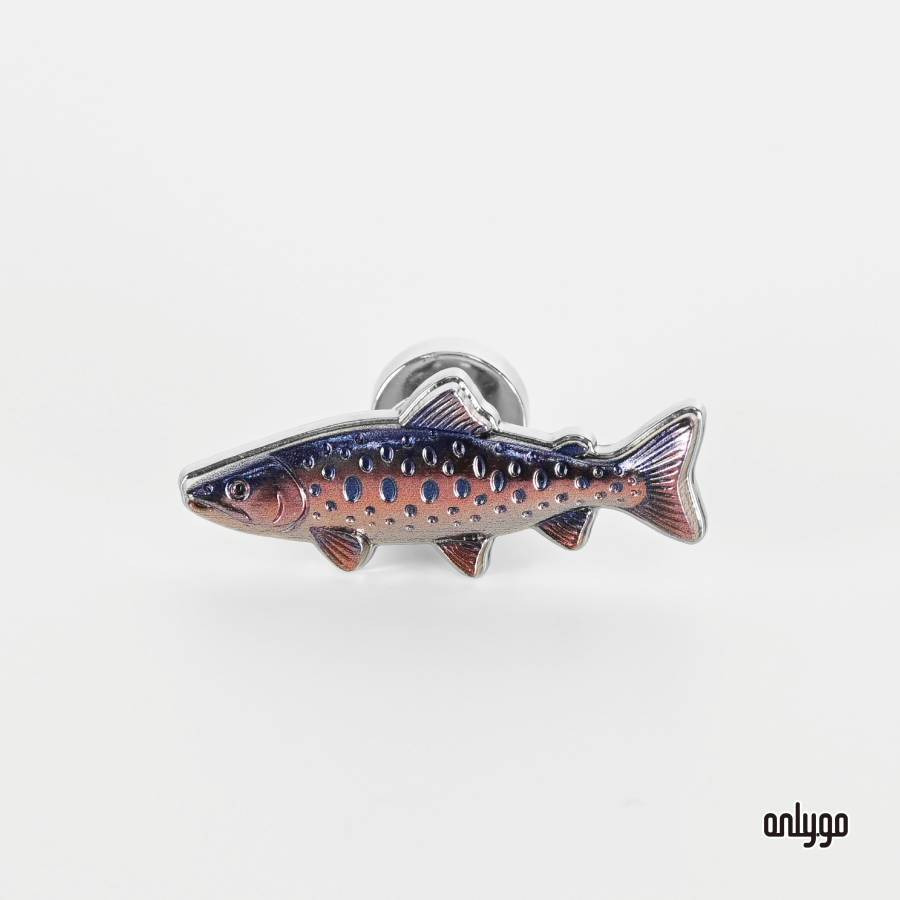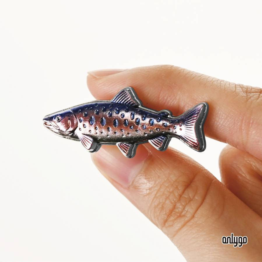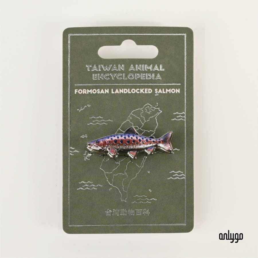 櫻花鉤吻鮭磁吸徽章以 3D 立體雕刻描繪修長魚身與流線比例,再以高解析彩色噴印呈現魚體細緻斑點與柔和色階。身體紋理與尾鰭動態層層展開,如同高山溪流中被水流慢慢雕刻的時光痕跡。
