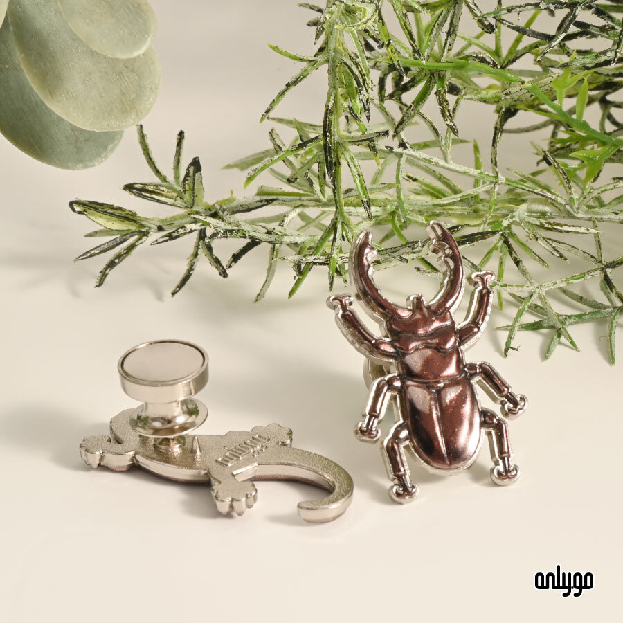 台灣深山鍬形蟲徽章不論是佩戴在背包、帽子、衣服,或吸附在冰箱、鐵櫃上,都能隨時展示你對台灣自然生態的熱愛。