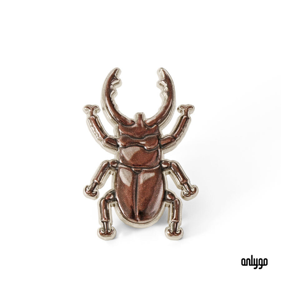 台灣深山鍬形蟲磁吸徽章採用 3D 立體彩色噴印技術,將牠霸氣的大顎、厚實的甲殼與微光閃爍的質感細膩呈現,連腳部與關節細節都精緻到位。