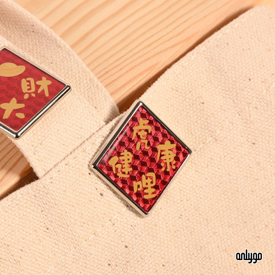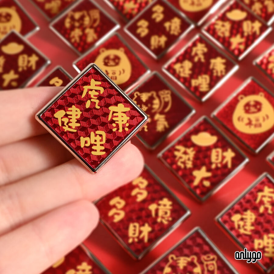 《虎運到|新年必收梗系徽章》把台灣人最愛的 諧音梗,加上虎年必備的紅金色調,變成五款不同 vibe 的徽章,讓你一戴就成全場焦點。