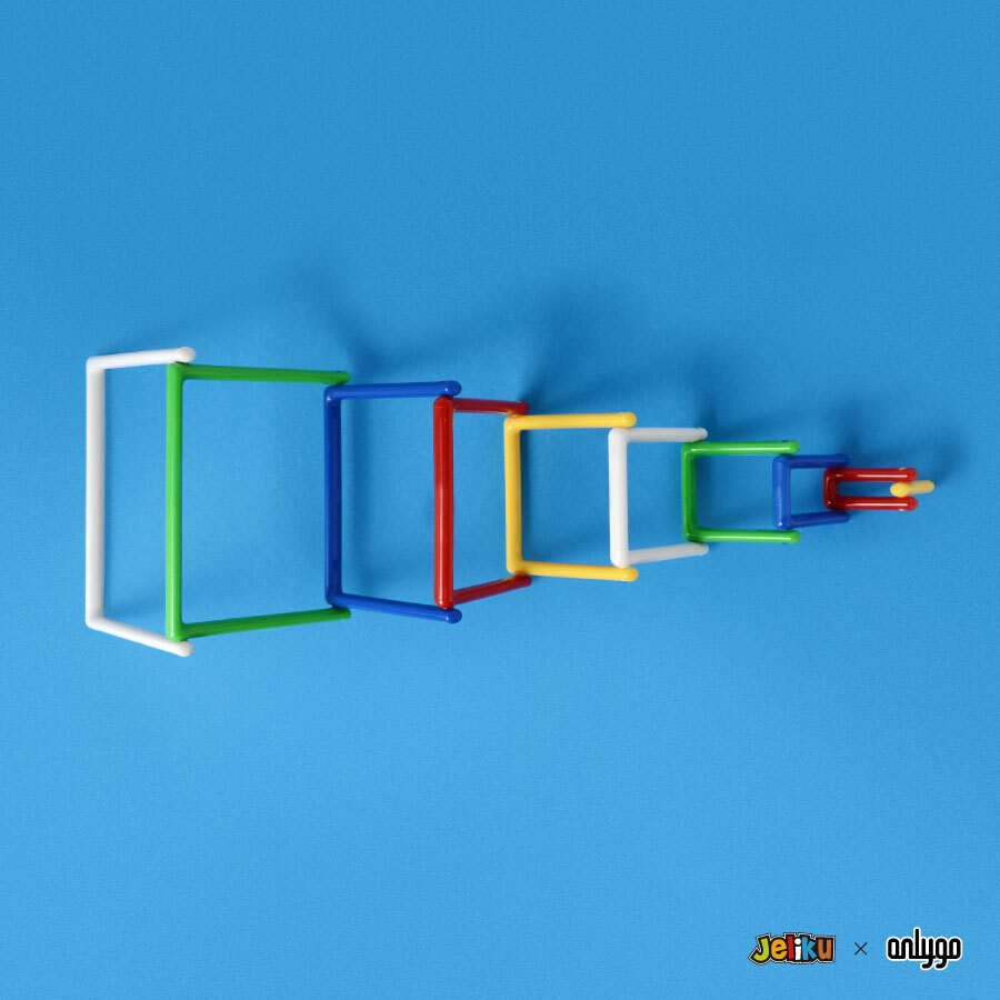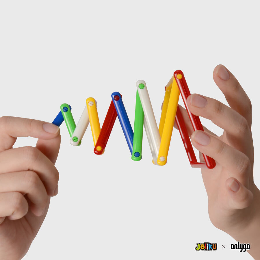 Jeliku 為台灣品牌設計的益智玩具,可以藉由彎折各小節、堆疊、或是多個 Jeliku 組合在一起等方式創造出各種趣味的造型,不受時間與空間限制,隨時隨地皆能玩!