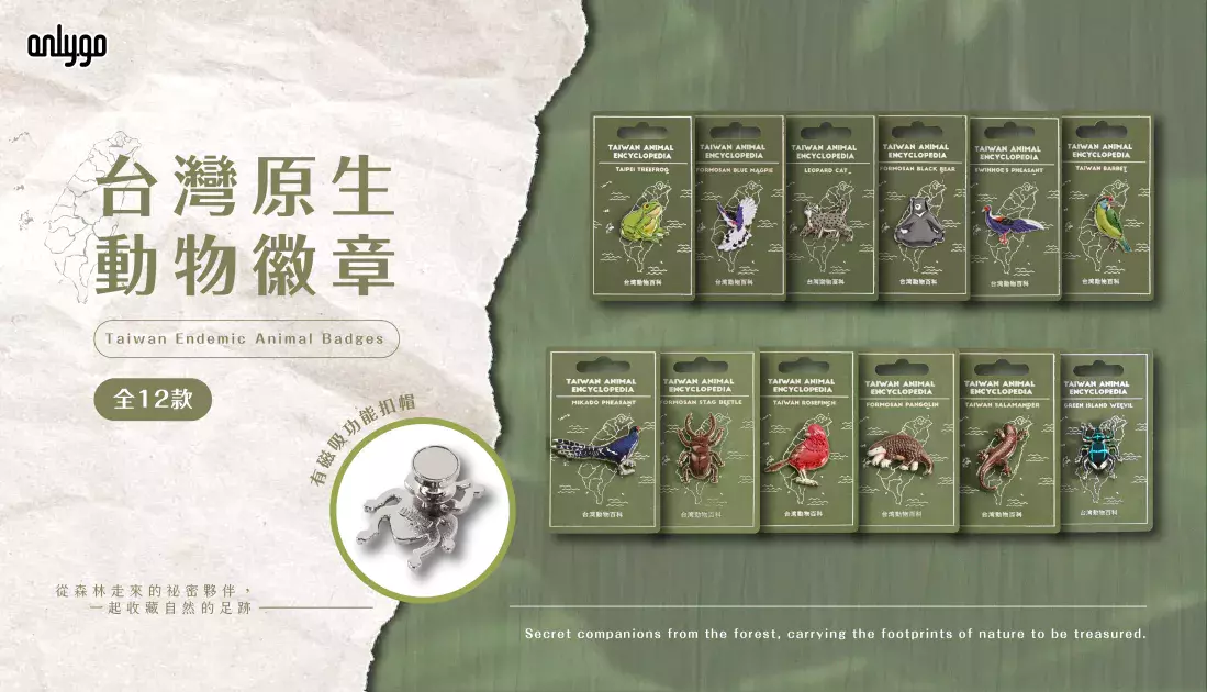 徽章可磁吸、可穿搭,也能與台灣地圖帆布袋搭配成「台灣生態地圖」,適合收藏、送禮、教育與展示。