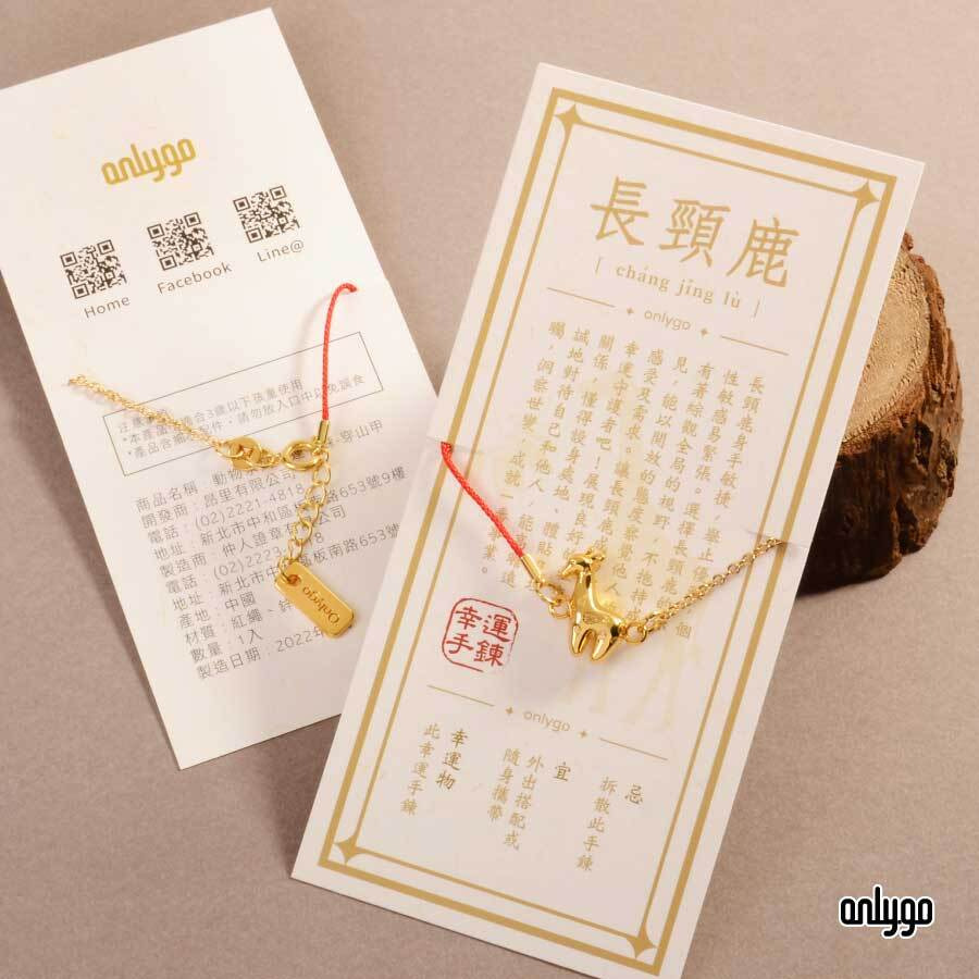 動物幸運手鍊為結合台灣傳統籤詩祈福的文化及各動物的特色性格而設計出的時尚飾品。主體吊飾為 12 隻具有特色性格的動物,並賦予其象徵意義,環鍊則以紅繩與金鍊各半的形式呈現。