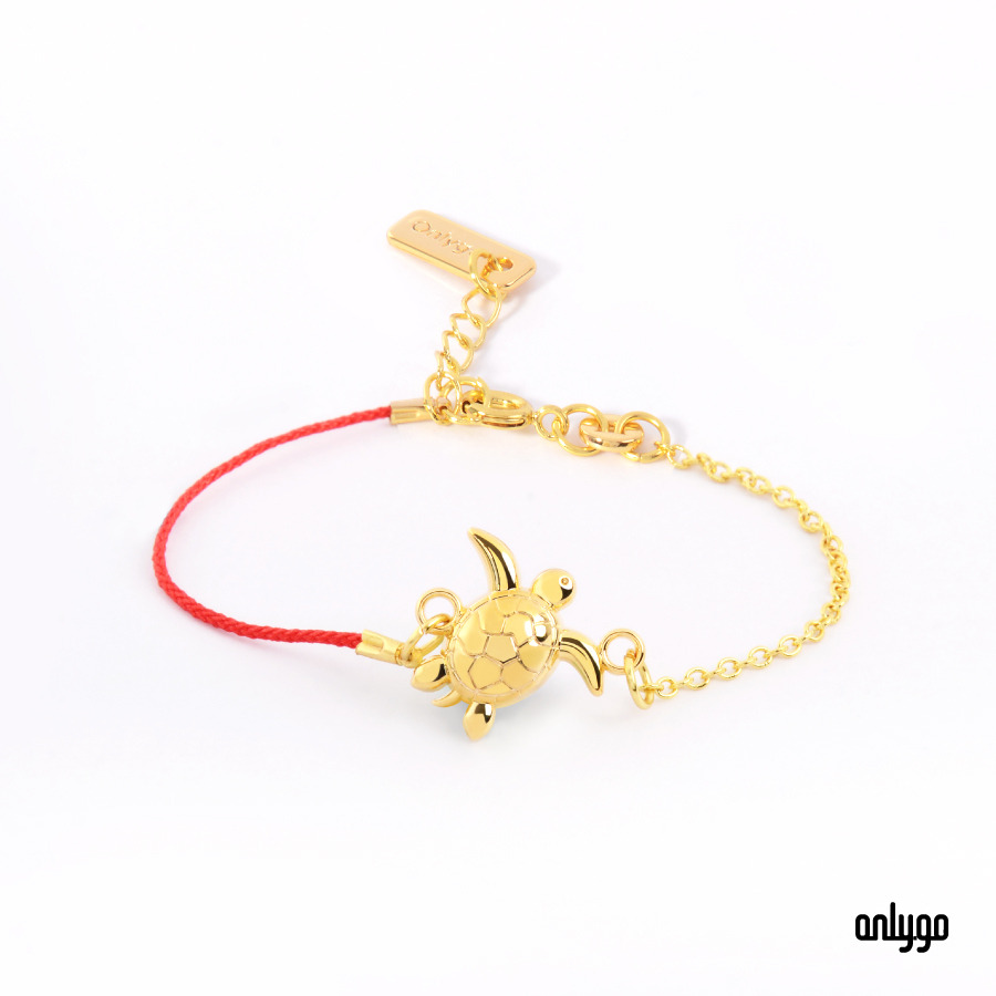 紅繩在台灣傳統文化中,象徵祝福、吉祥、開運,設計師以紅繩與金鍊各半的形式呈現手鍊,將傳統與時尚結合。