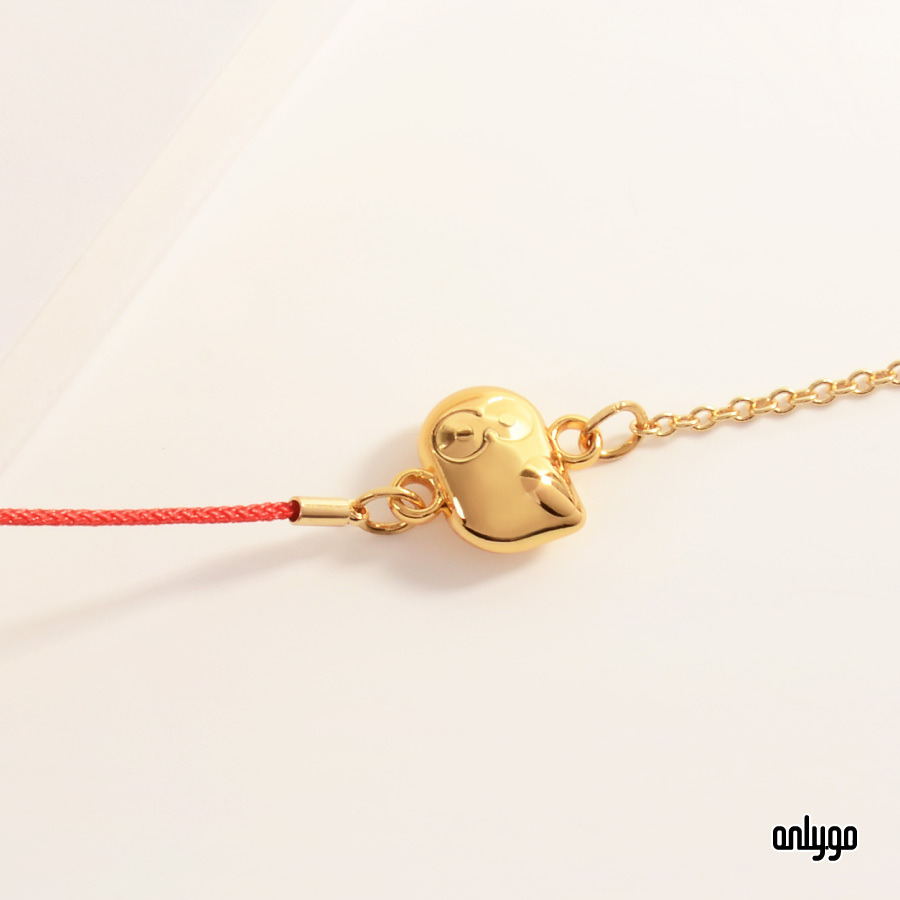 紅繩在台灣傳統文化中,象徵祝福、吉祥、開運,設計師以紅繩與金鍊各半的形式呈現手鍊,將傳統與時尚結合。