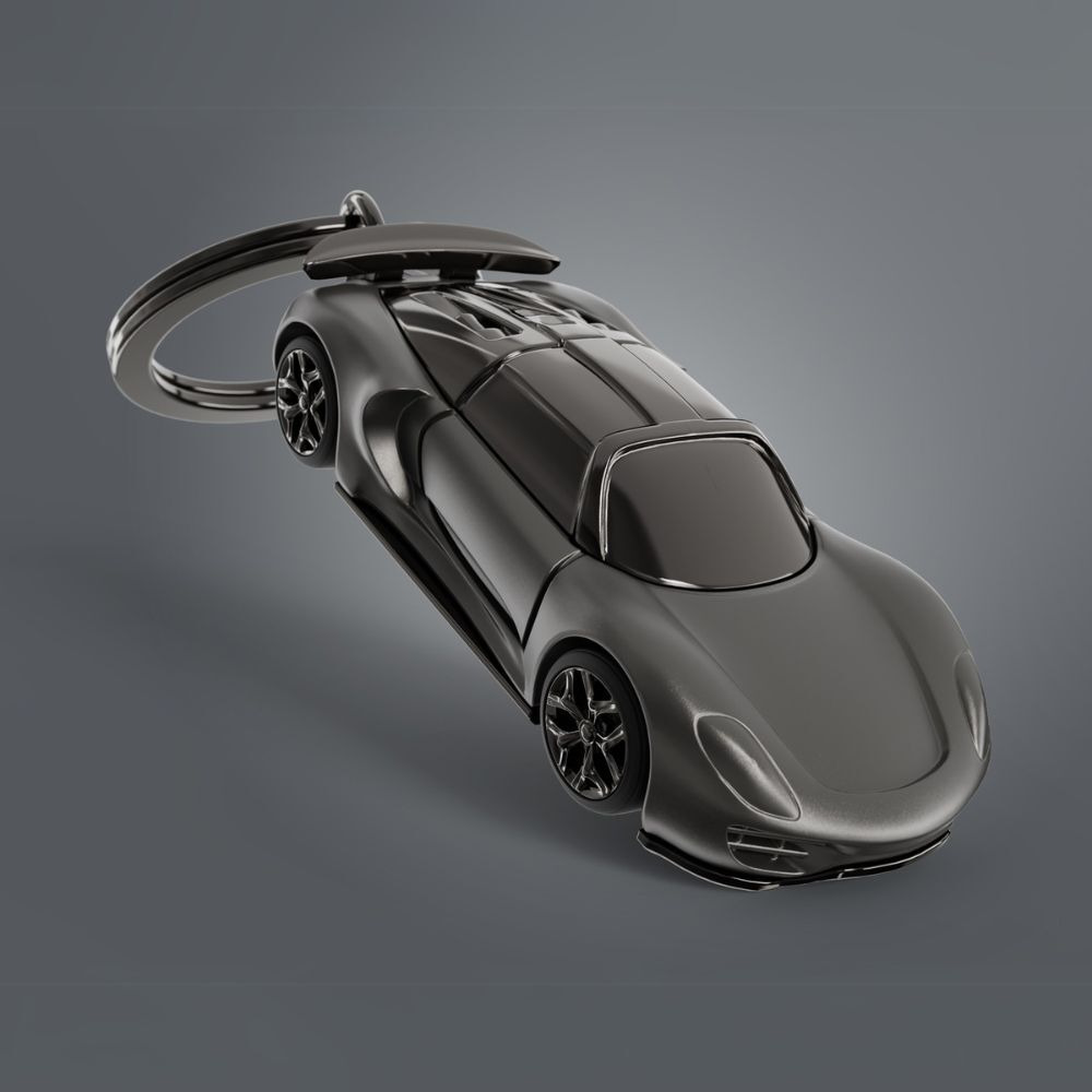 「口袋裡的超跑夢」 啞光霧黑車身,低調中透出狠勁,流線輪廓宛如深夜中掠過街頭的疾影,無聲卻讓人目光停留。霧黑金屬鑰匙環與整體色系完美融合,俐落、質感、零贅飾,只為襯托你的獨到品味。