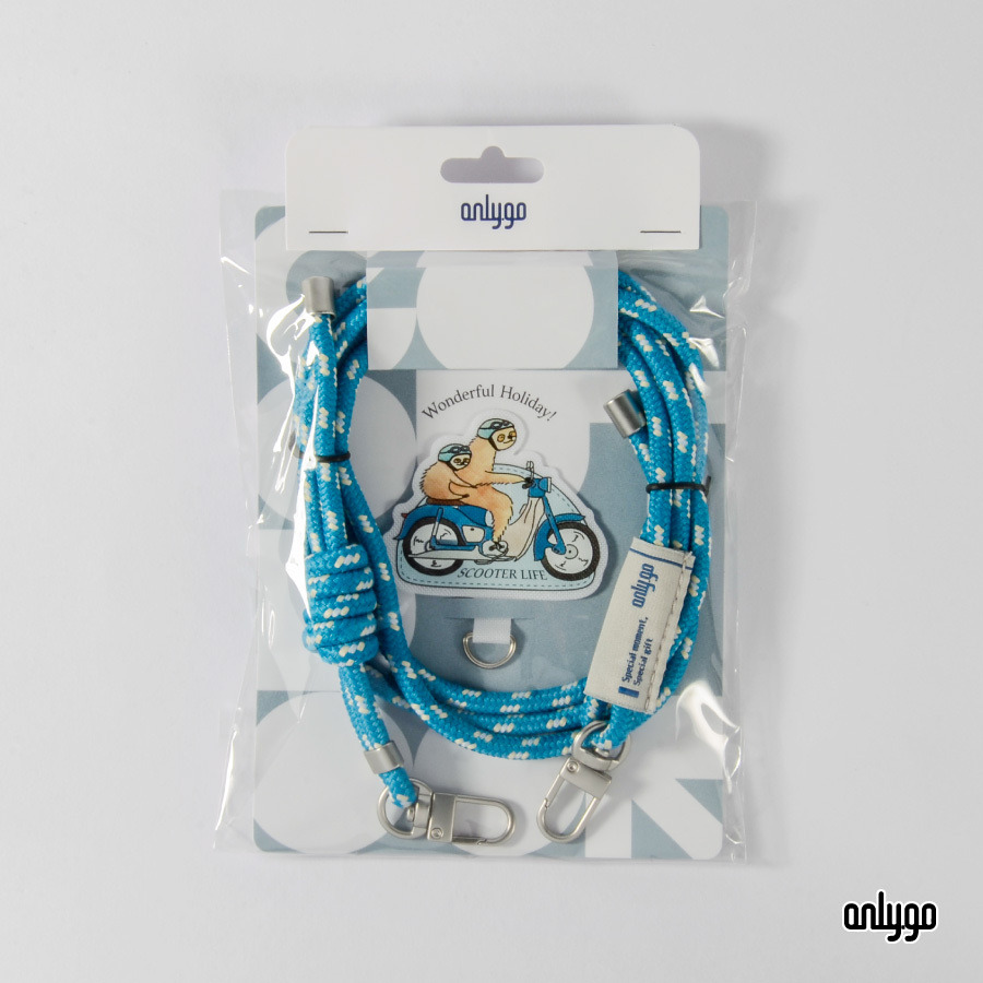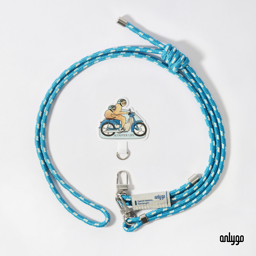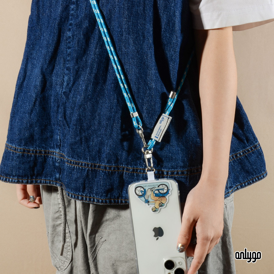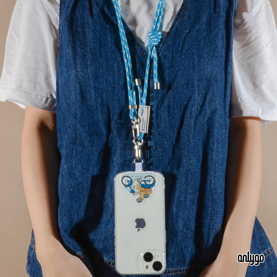 搭配與手機夾片同色系的藍色手機掛繩,提升整體設計感。