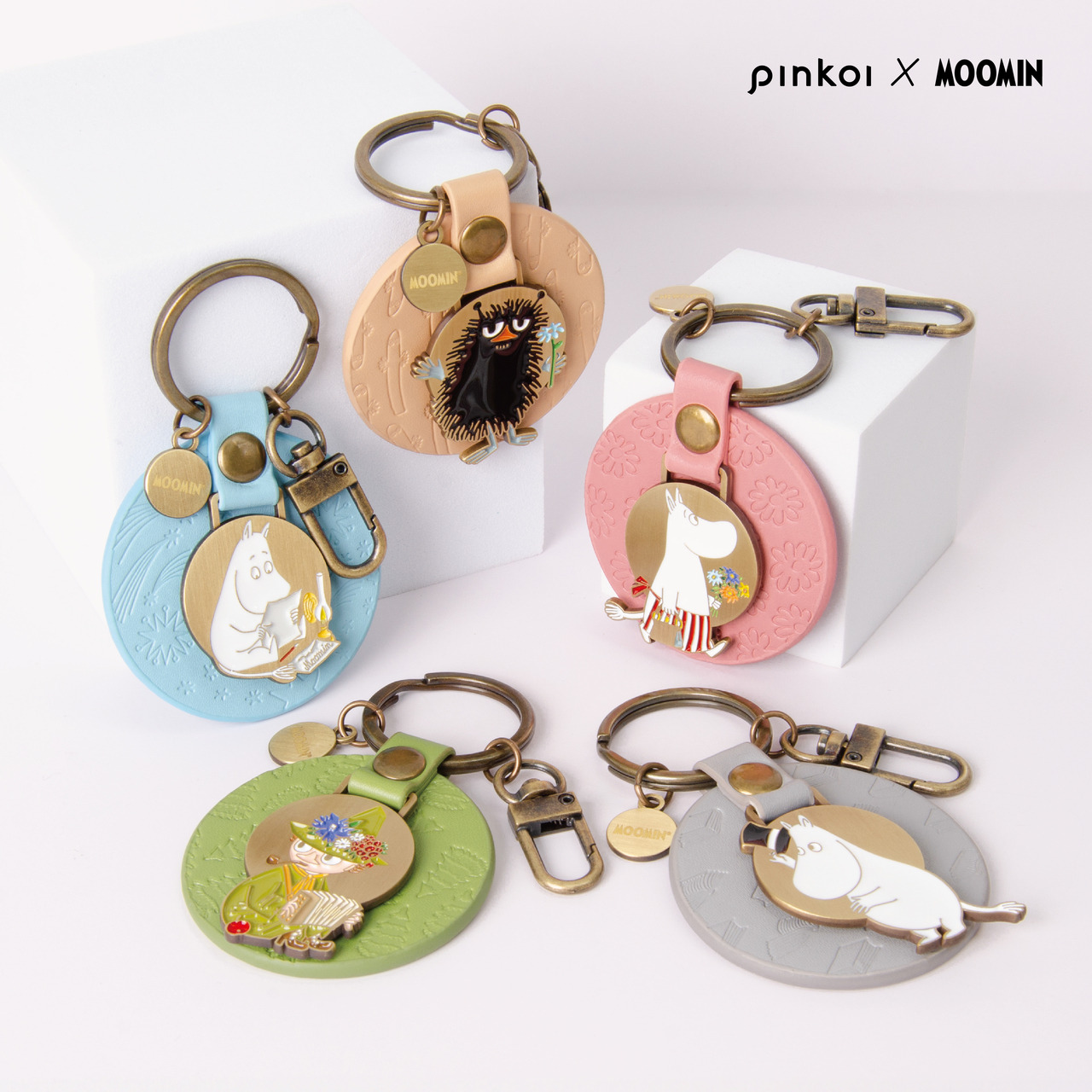 精選 Moomin 五款經典角色:姆明、姆明媽媽、姆明爸爸、史力奇、史丁奇,化作精緻金屬吊飾皮革鑰匙圈,與你一起擁抱生活的每一天!