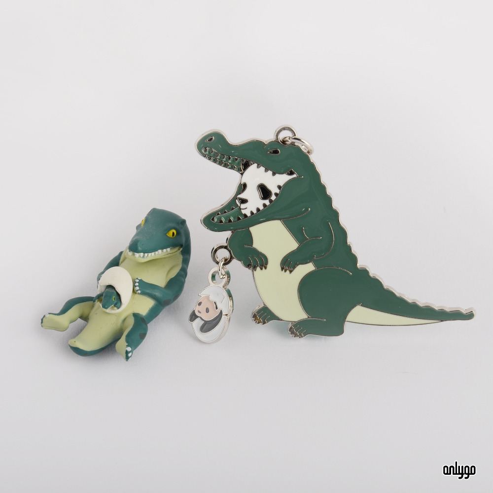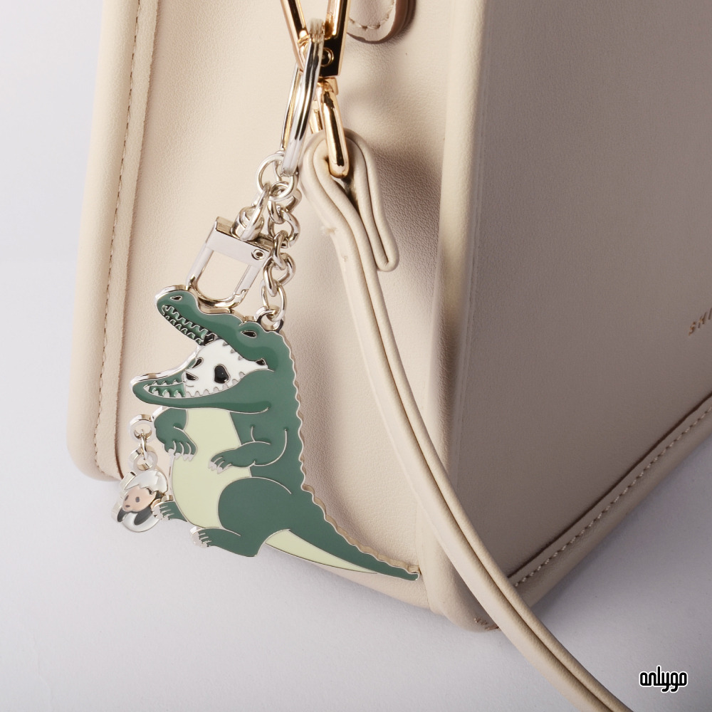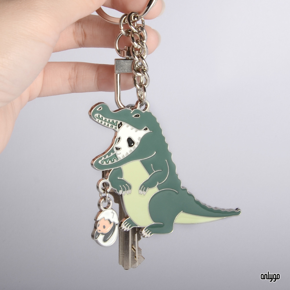 「貓熊代班系列鑰匙圈-鱷魚」使用凸字雕刻的方式來刻劃一排排的可愛貓熊臉,鑰匙圈主體電鍍白鎳,讓鑰匙圈整體有一致的設計感~