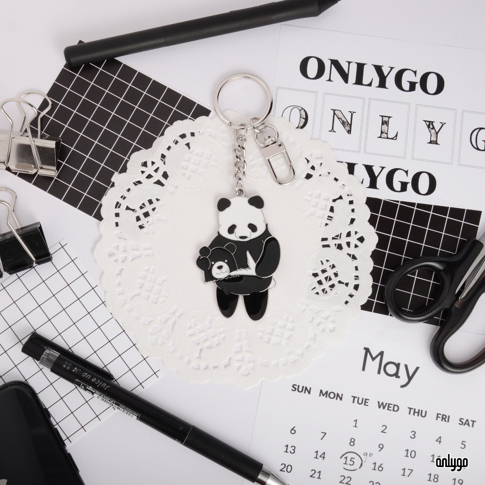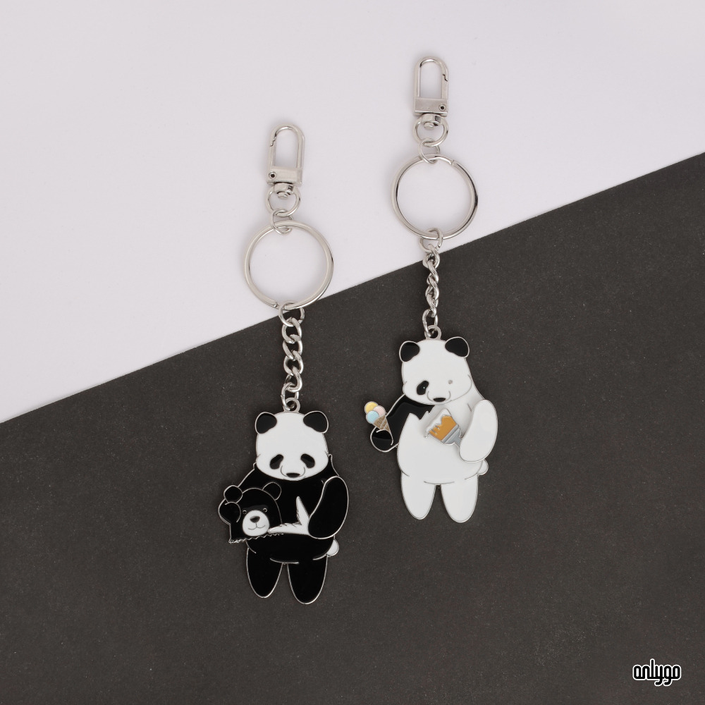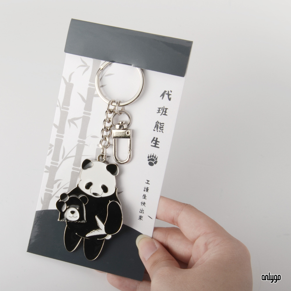 「貓熊代班系列鑰匙圈-台灣黑熊」使用凸字雕刻的方式來刻劃一排排的可愛貓熊臉,鑰匙圈主體電鍍白鎳,讓鑰匙圈整體有一致的設計感~