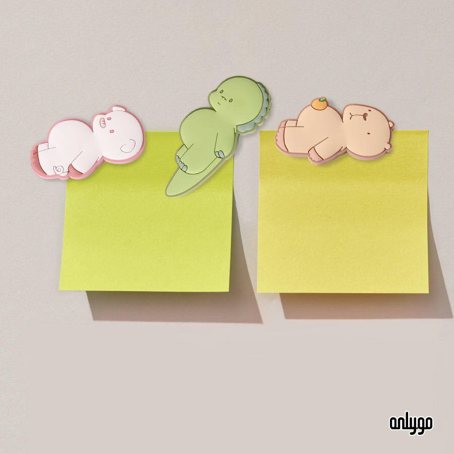 每個懶洋洋冰箱貼磁鐵皆附有懶洋洋插畫便條紙。