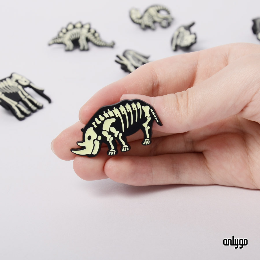 自從電影《博物館驚魂夜》上映,夜晚的博物館讓人著迷,昂里設計師以化石為出發點,結合動物骨骼與夜光效果,設計一系列富有教育性質又有趣的夜光動物徽章。