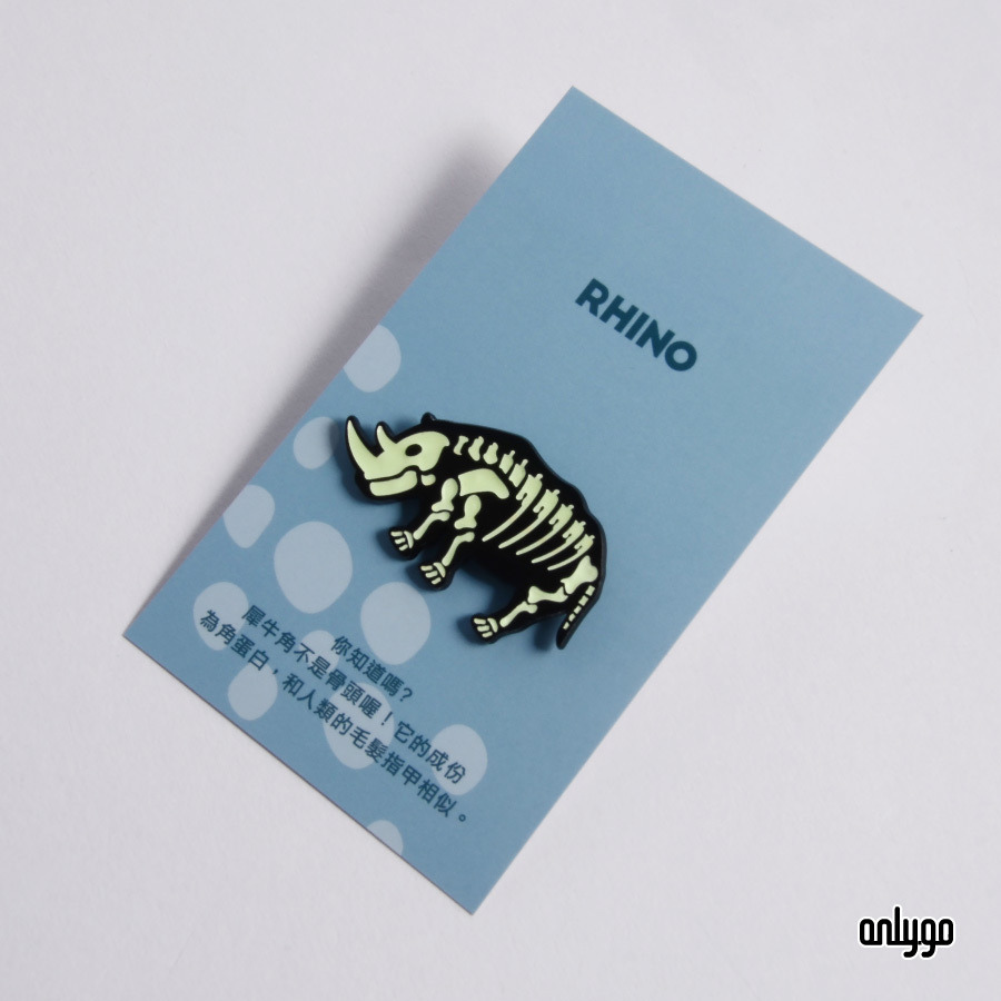 此款夜光徽章設計中性,不論是別在包包或衣服上都十分適合,喜歡動物、骨骼或是夜光的你,趕快來收集整組吧!