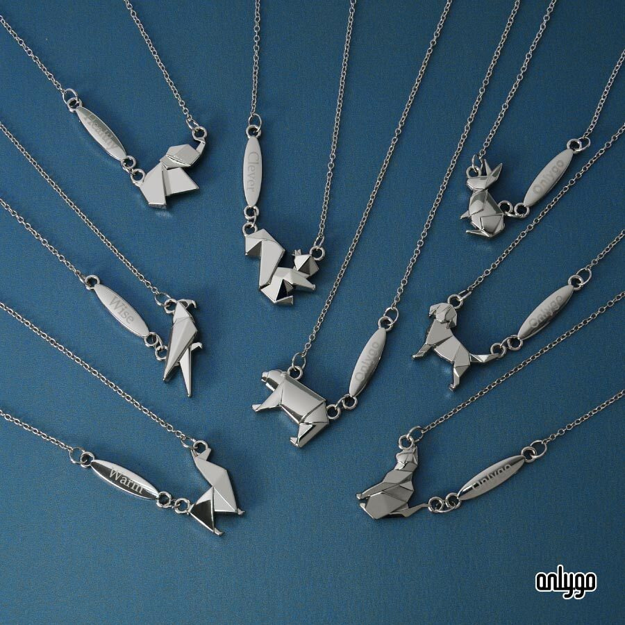 昂里設計師將摺紙藝術藉由幾何形狀拼湊出動物的摺紙模樣,並結合動物所代表的象徵意義,打造出典雅但保有童趣的動物造型項鍊。