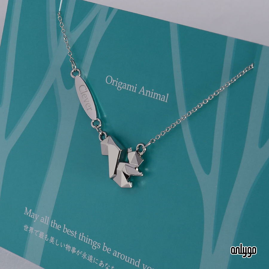 動物摺紙造型項鍊有多款動物摺紙造型,分別為有智慧的鸚鵡、勇敢的熊、聰明的松鼠、溫暖的羊駝、優雅的貓兒、友善的狗狗、健康的大象、窩心的兔子、幸運的貓熊、平靜的鯨魚、好奇的海豚、可愛的企鵝、活力的神仙魚、溫和的海馬。