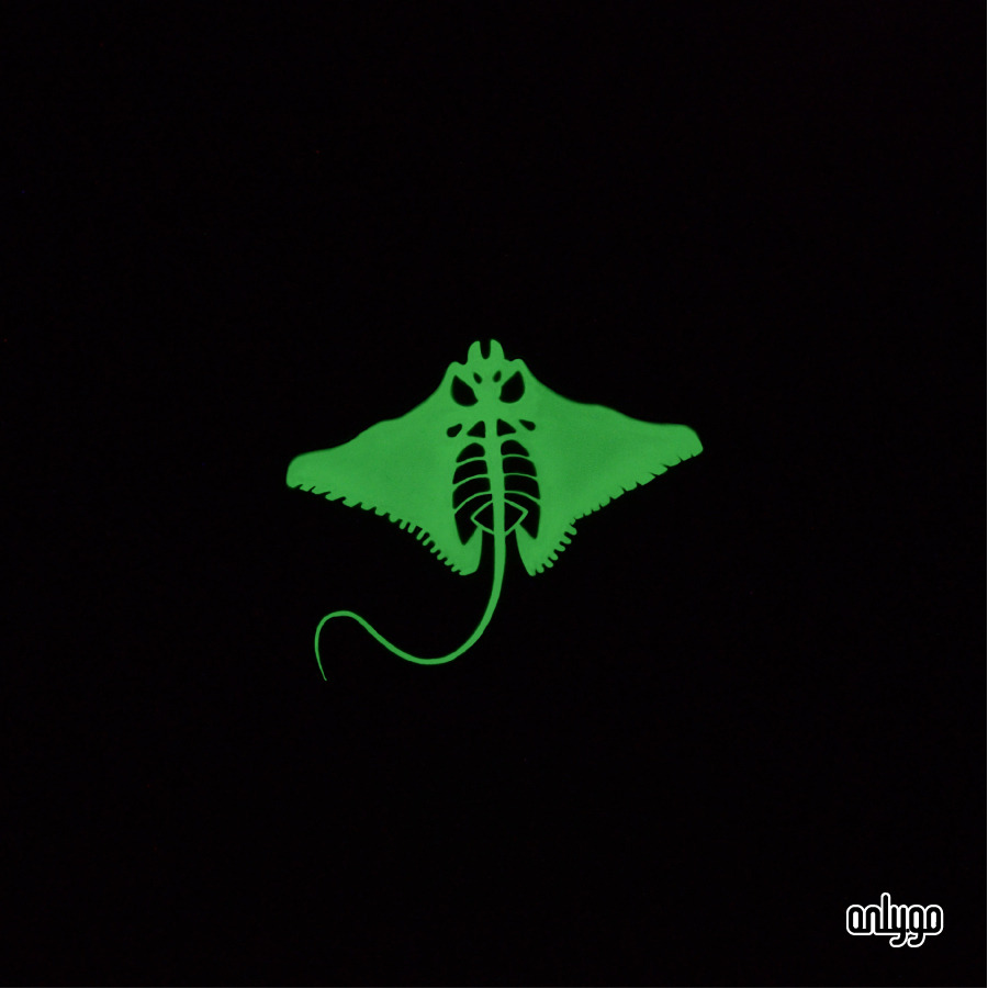 昂里設計師利用夜光色料作為底漆填入骨骼處,使徽章一到晚上就會發光喔!