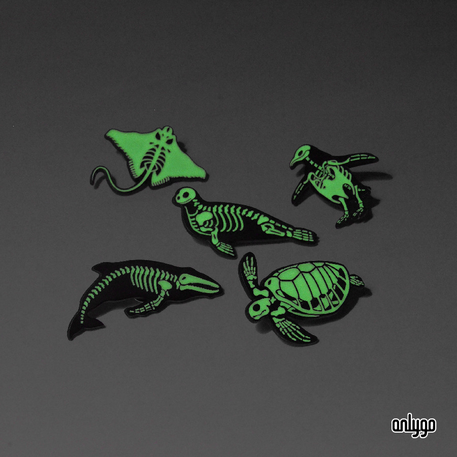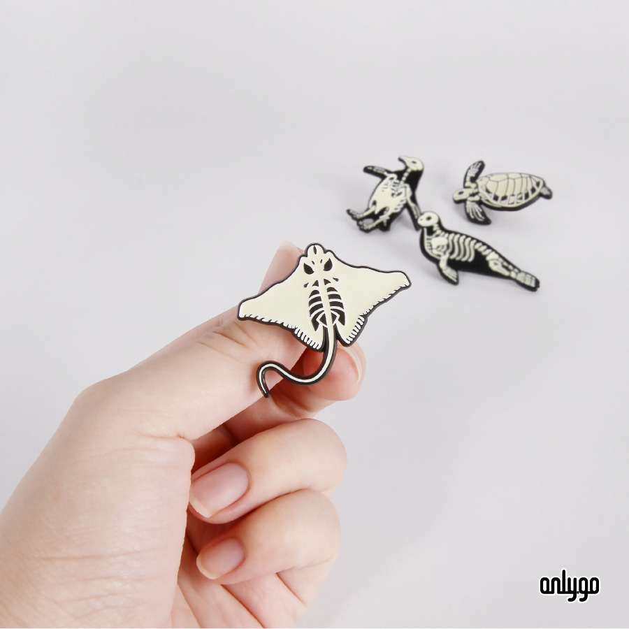 此款夜光徽章設計中性,不論是別在包包或衣服上都十分適合,喜歡動物、骨骼或是夜光的你,趕快來收集整組吧!