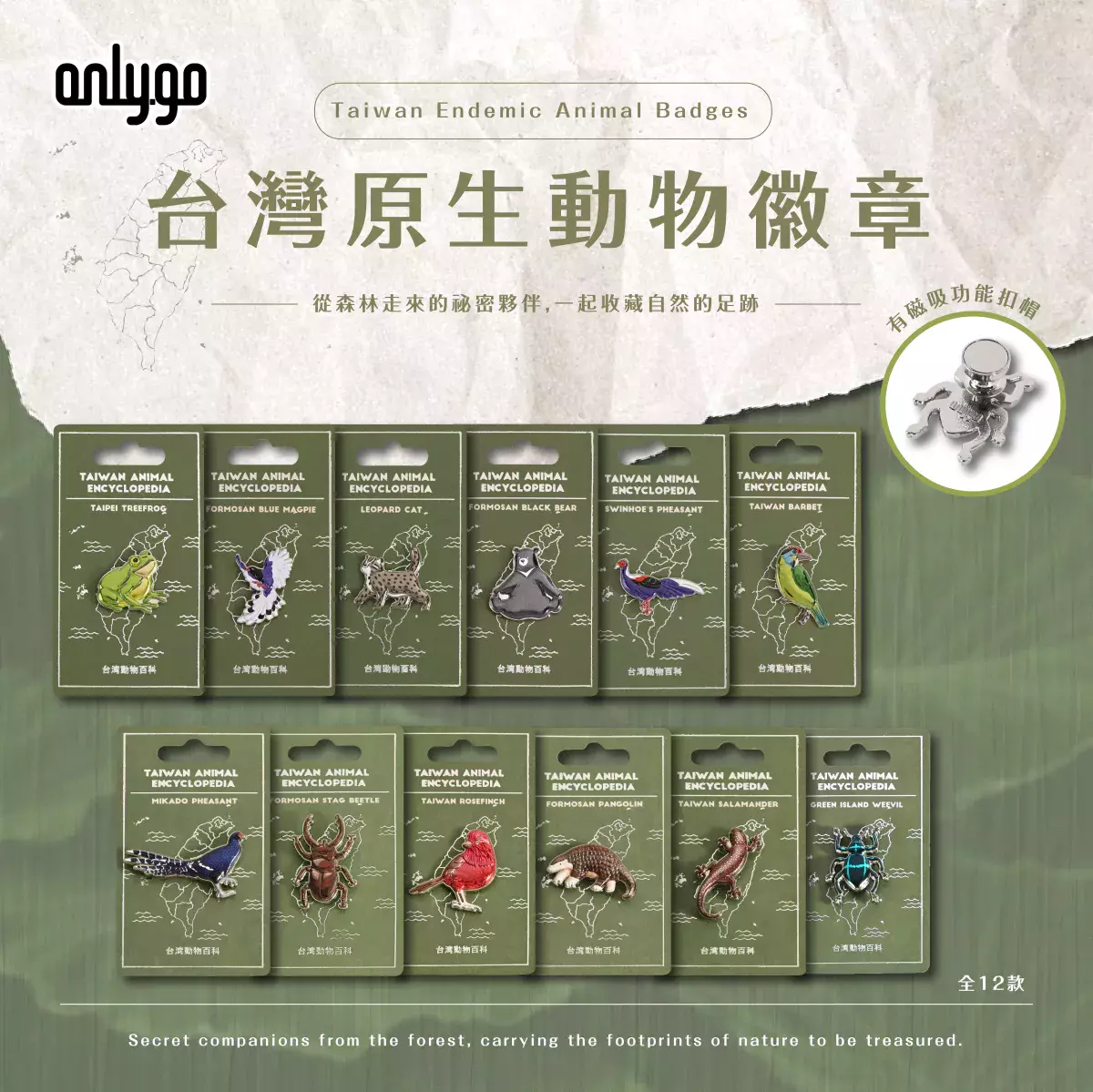 簡約文青風設計,讓你在日常生活中,既能輕鬆實踐環保,又能透過徽章收藏,展現你對台灣自然的熱愛!