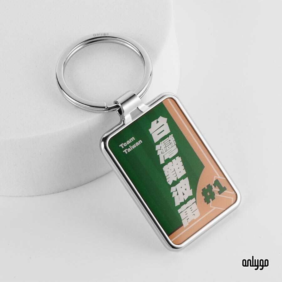 台灣難波萬應援鑰匙圈正面以鮮明的棒球場綠橘撞色設計,呼應運動場上的活力氛圍。
