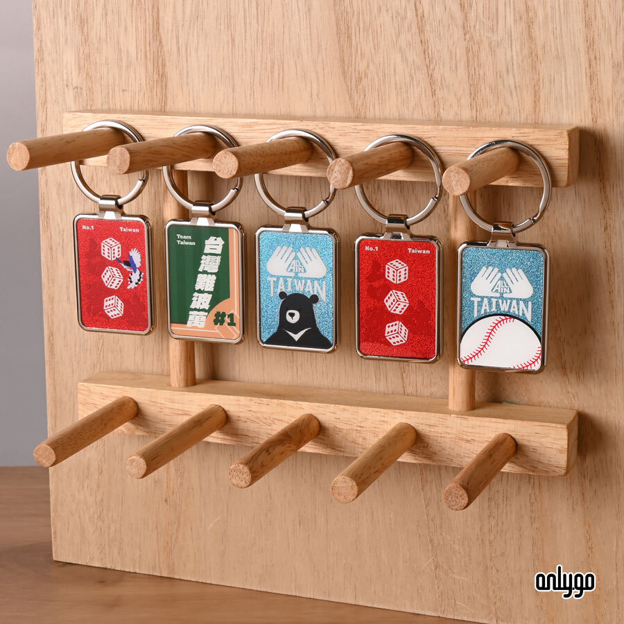 「Team Taiwan 台灣魂應援鑰匙圈系列」融合經典應援手勢、台灣象徵動物、幸運骰子與在地用語,以五款設計呈現最具代表性的台灣精神與棒球熱情。從 All In 到台灣難波萬,從黑熊到藍鵲,每一款都富有文化意象與情感能量,是你我日常的最佳應援夥伴。