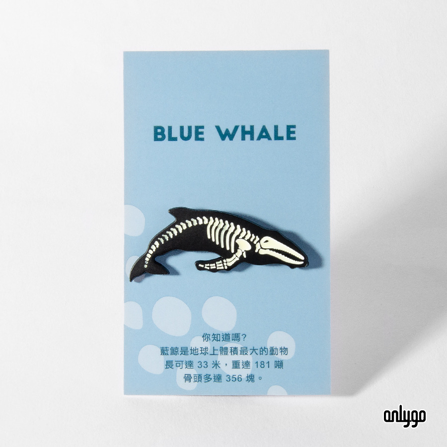 藍鯨造型夜光徽章設計中性,不論是別在包包或衣服上都十分適合。