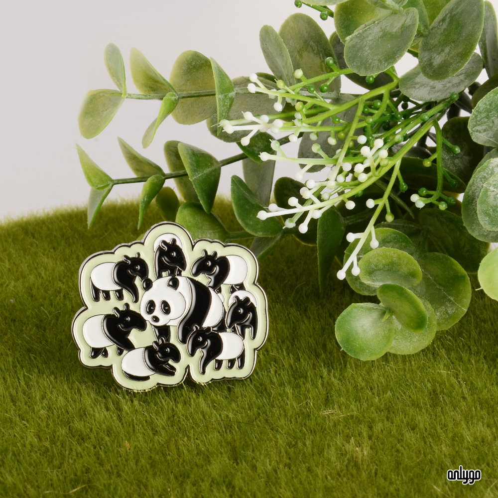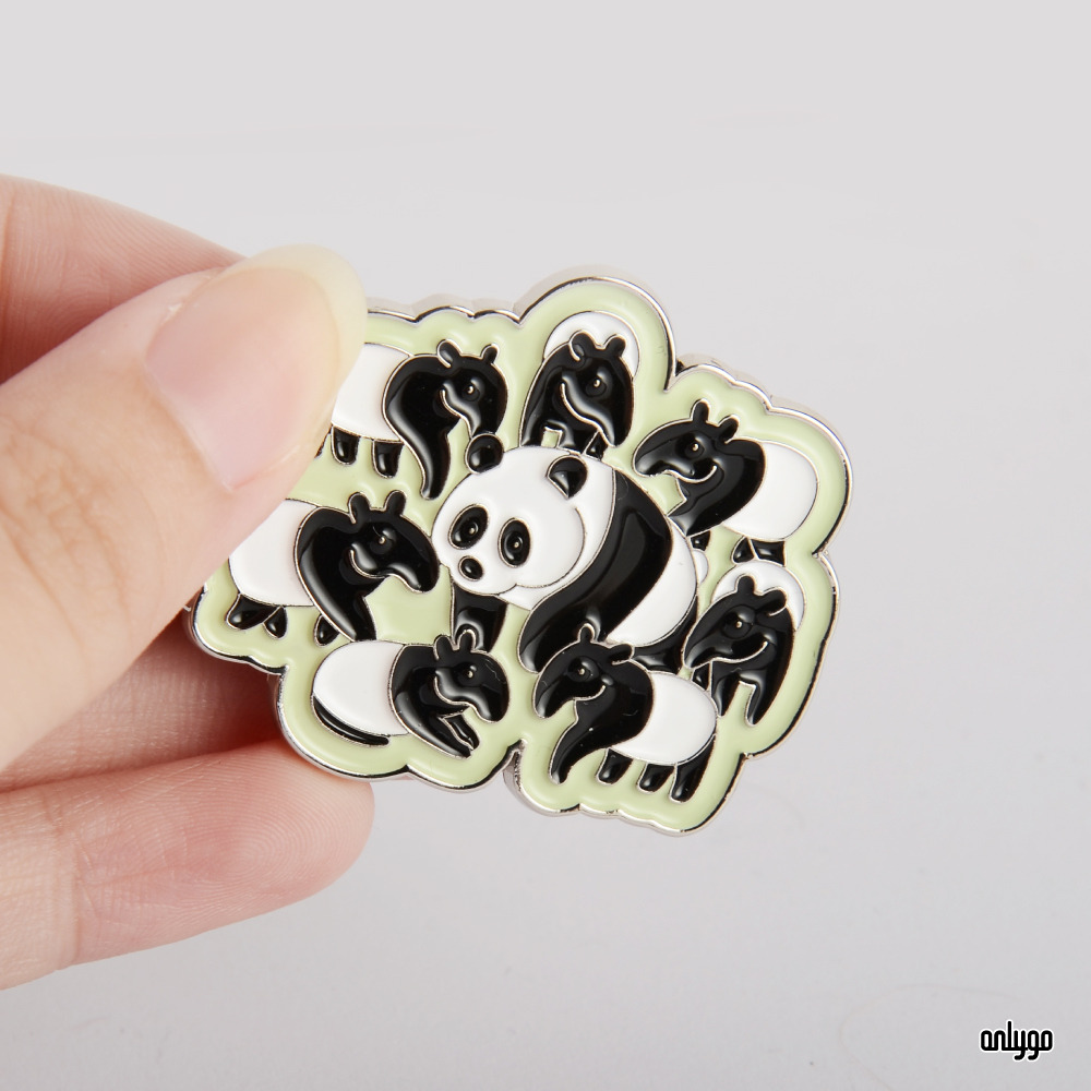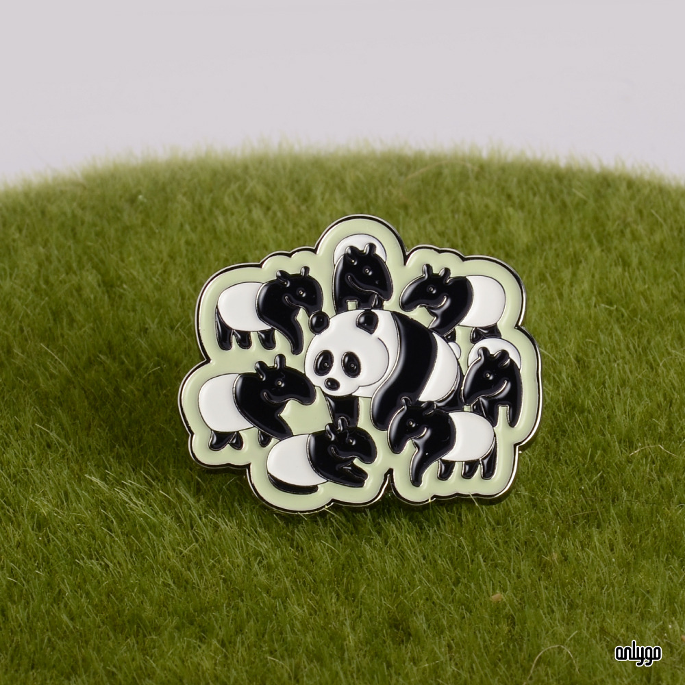 「Peekaboo! 貓熊躲貓貓系列徽章 – 馬來貘」使用凸字雕刻的方式來刻劃一排排的可愛貓熊臉,連同按壓式別針一起鍍白鎳,讓徽章整體有一致的設計感~
