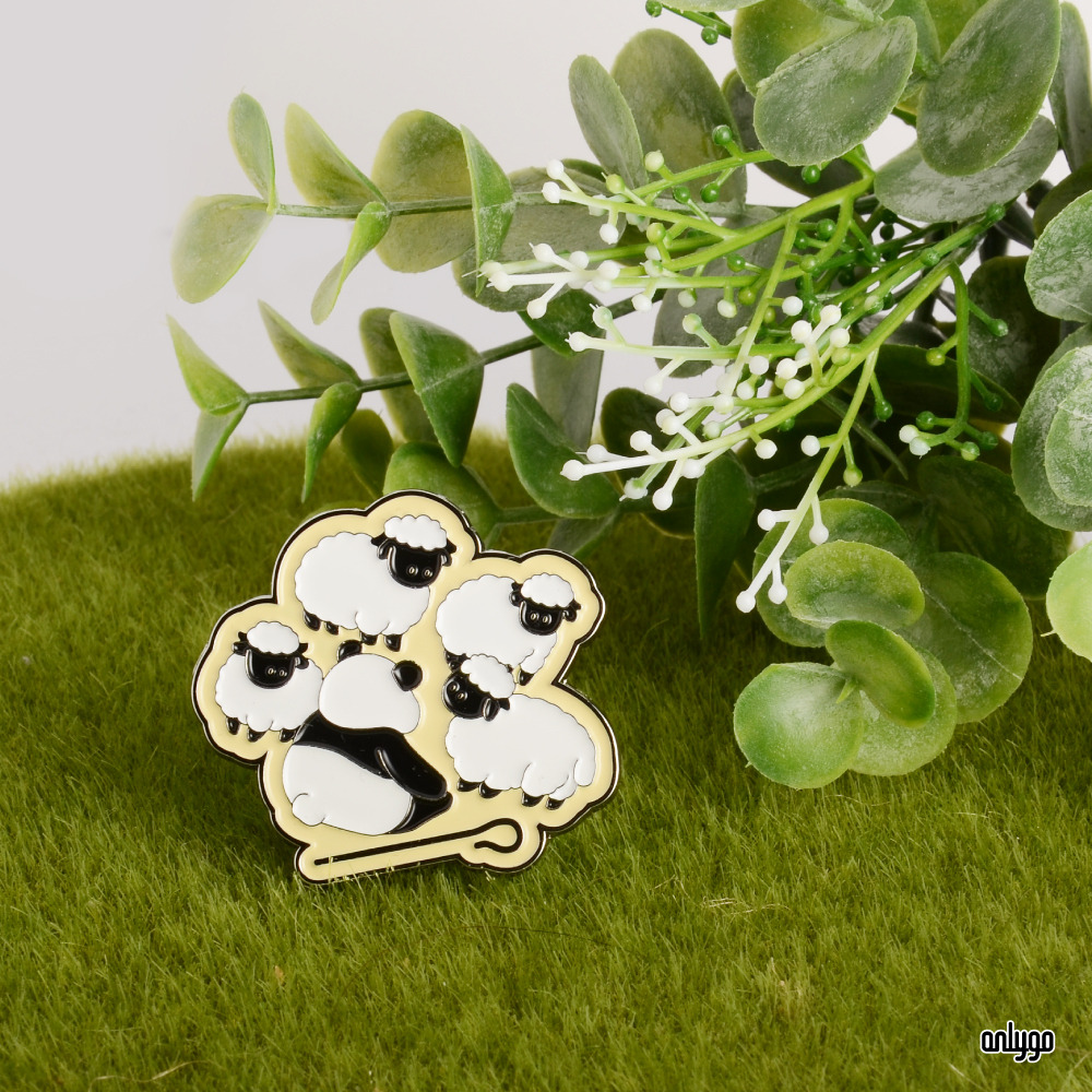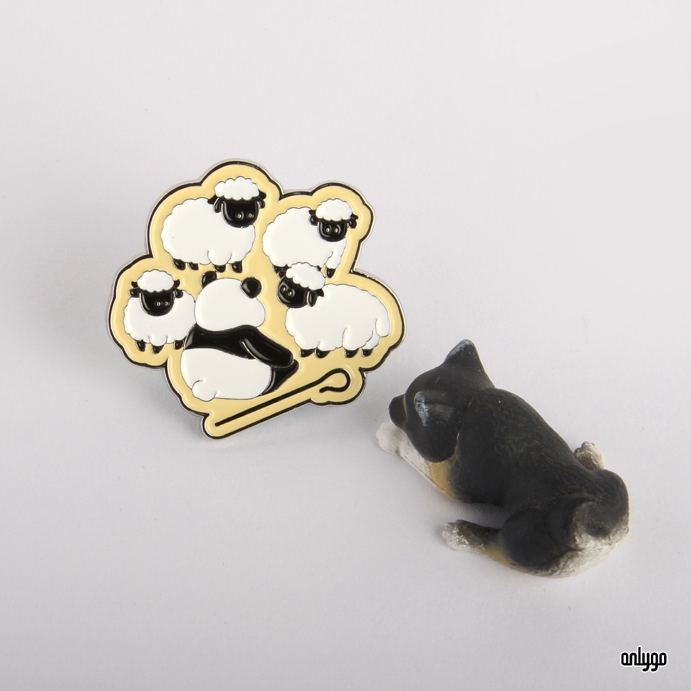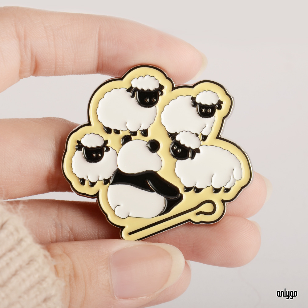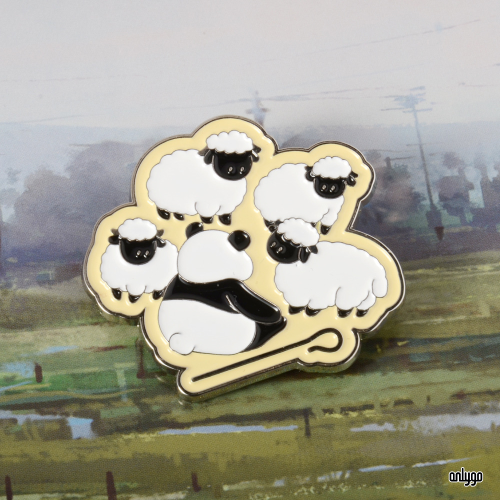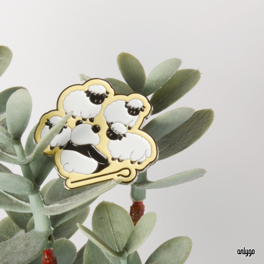 「Peekaboo! 貓熊躲貓貓系列徽章 – 黑鼻羊」使用凸字雕刻的方式來刻劃一排排的可愛貓熊臉,連同按壓式別針一起鍍白鎳,讓徽章整體有一致的設計感~